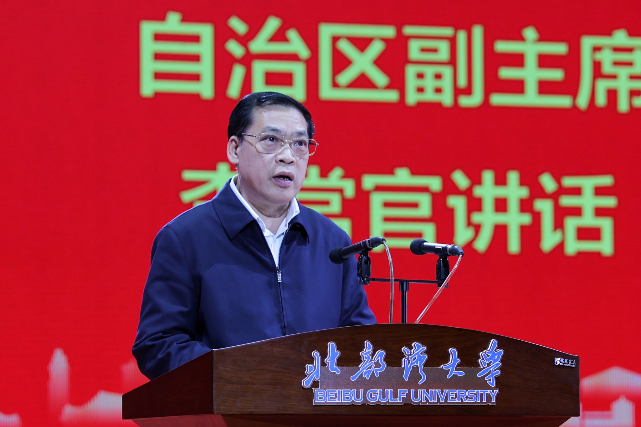 李常官代表自治区党委、政府对北部湾大学建校50周年表示祝贺,回顾了湾大艰辛而辉煌的发展历程,展望了未来美好的发展前景。他指出,踏上新征程,北部湾大学要加强党的全面领导,准确把握学校改革发展前进方向,确保学校始终成为坚持党的领导的坚强阵地、培养社会主义事业建设者和接班人的坚强阵地;要聚焦立德树人,培养堪当民族复兴重任的时代新人,为经济社会发展输送更多优秀人才;要突出办学特色,写好向海经济这篇大文章,朝着建成海洋特色鲜明的高水平应用型大学目标阔步前进;要践行高校使命担当,在服务北部湾经济区和全区发展大局中实现自身更大发展。