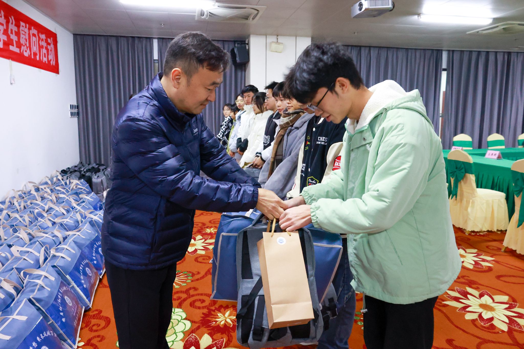 在活动现场,校领导和老师代表学校为同学们送上慰问品和慰问金。