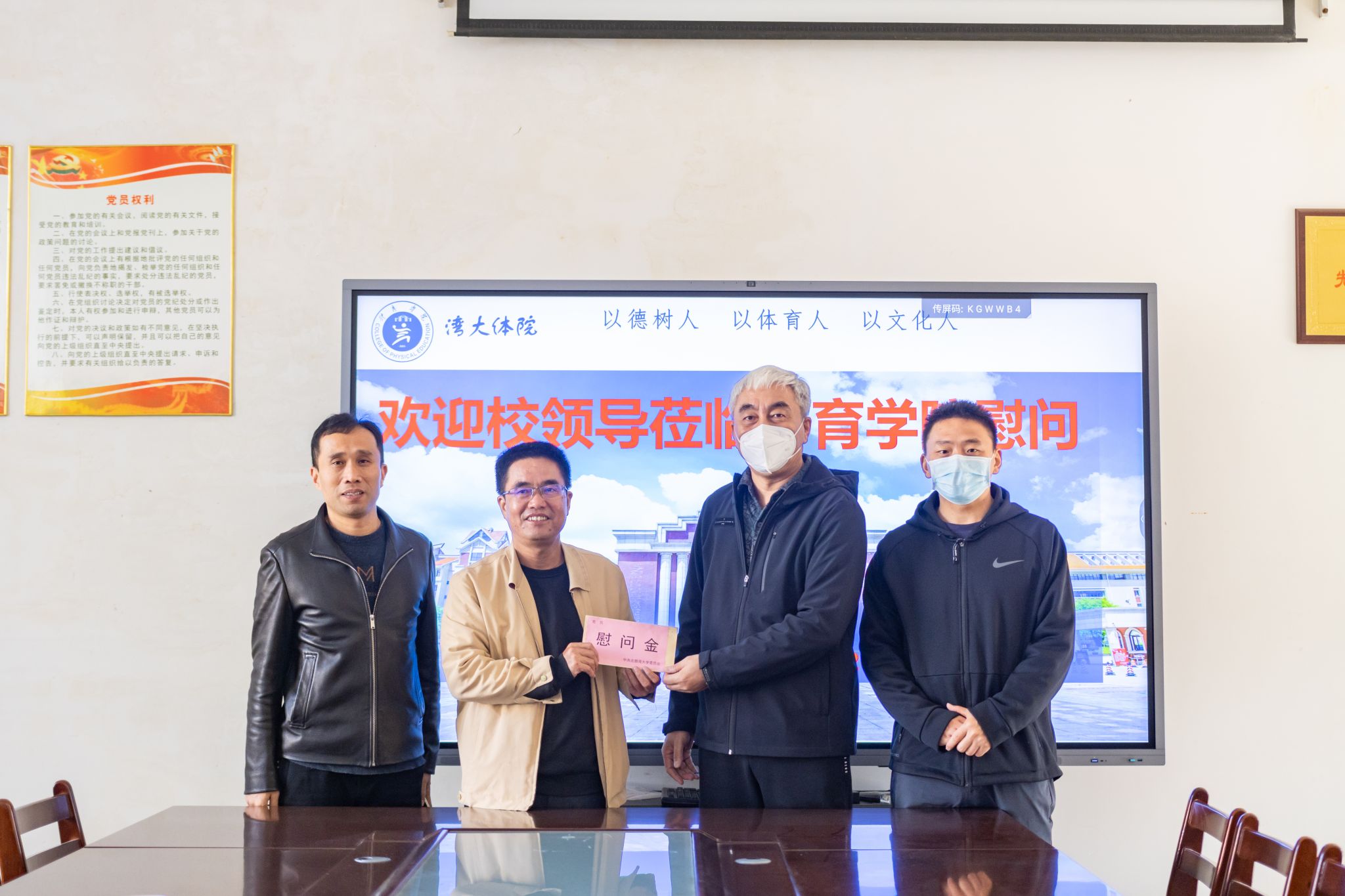 校党委常委、副校长梁智(左二)慰问体育学院教师代表