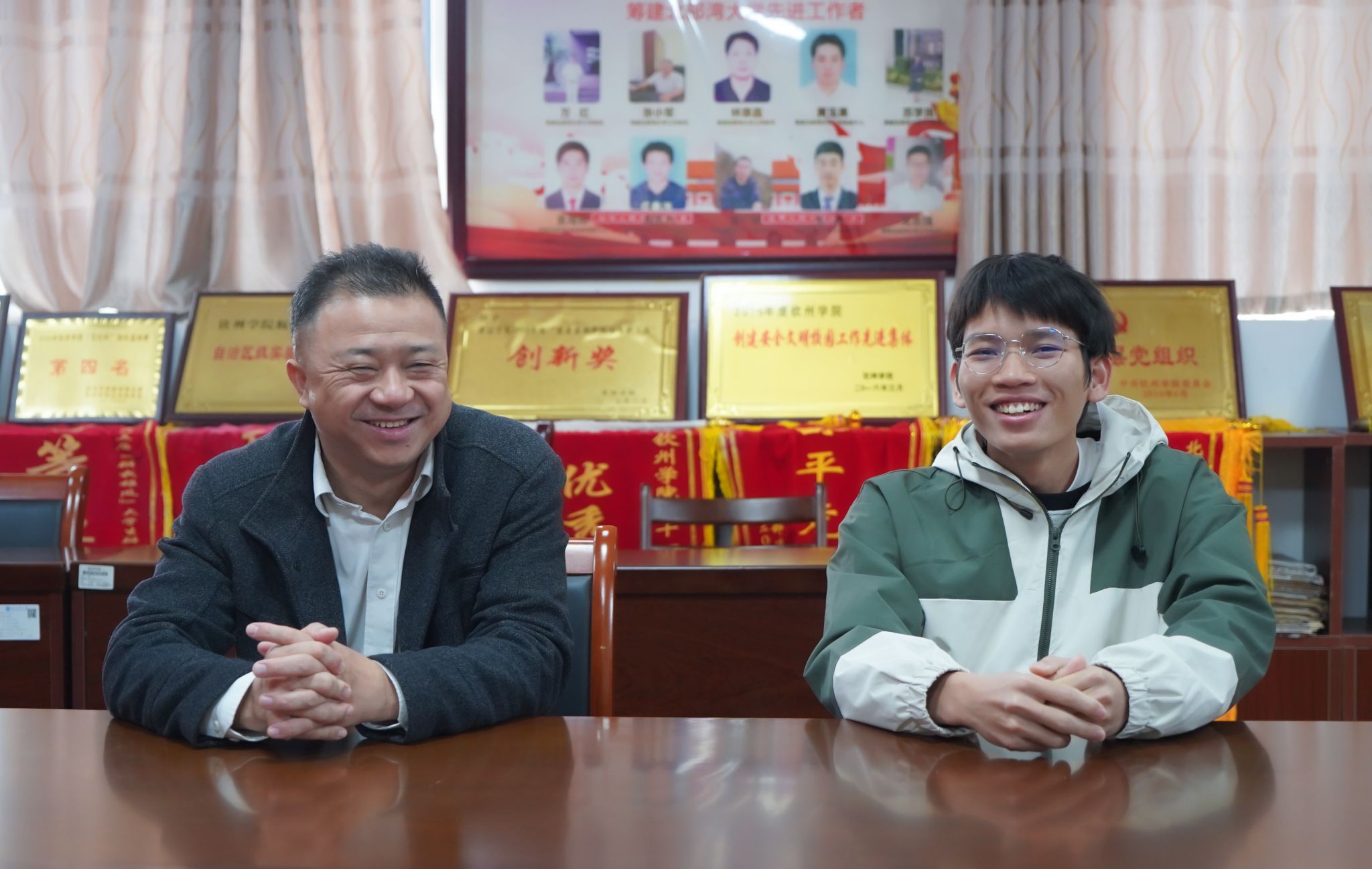 校党委常委、纪委书记谢立平(左)慰问建筑工程学院学生代表