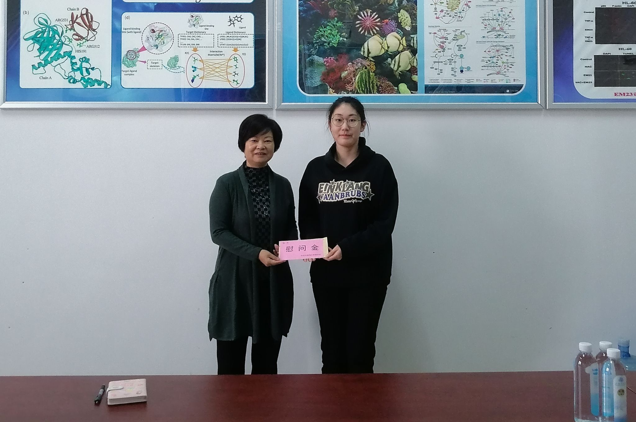 校党委常委、副校长陈丹(左)慰问海洋学院学生代表