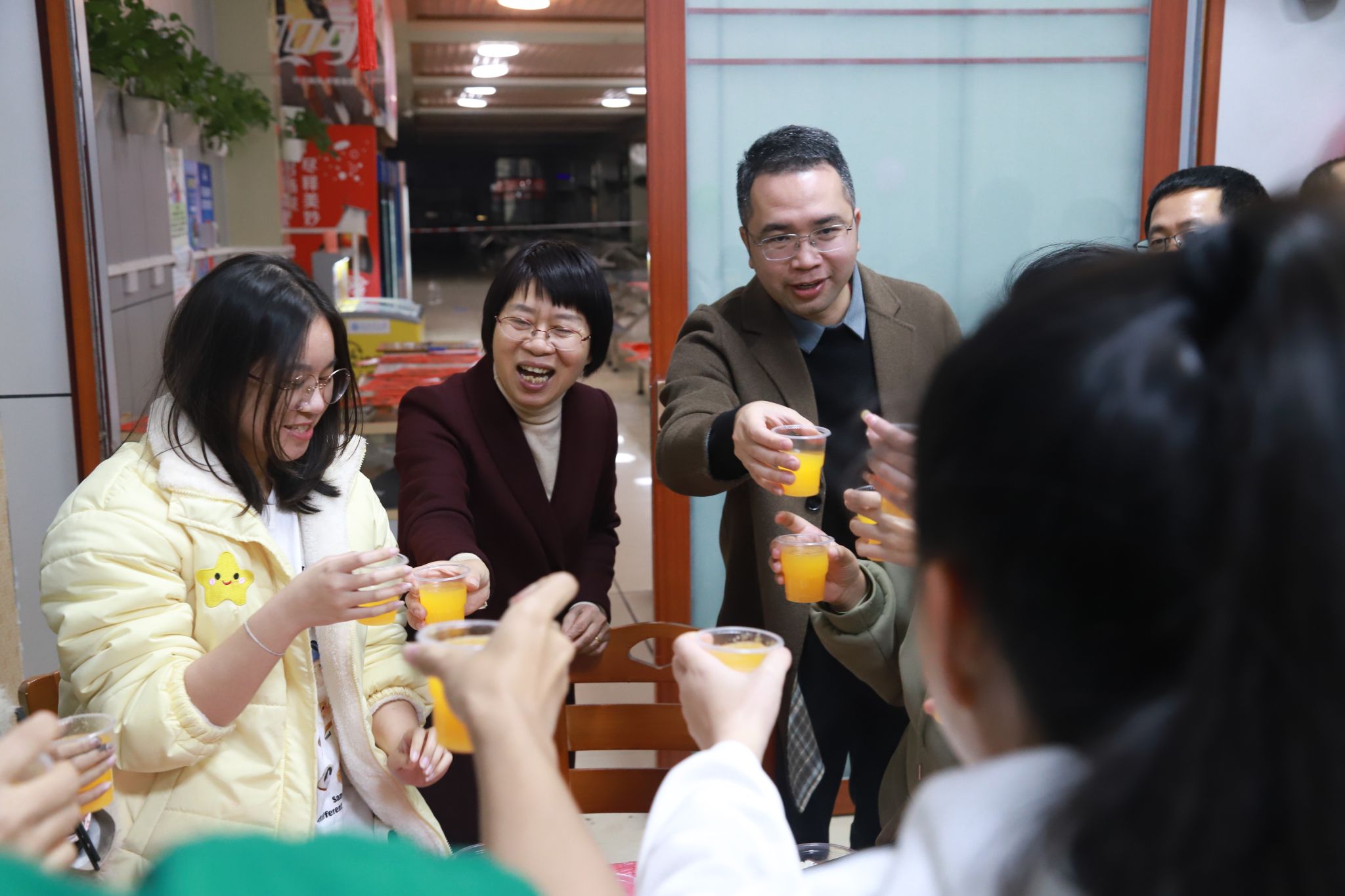 龙年迎新送祝福,吉祥如意庆佳节。2月7日,腊月廿八,校园里挂满火红的灯笼,洋溢着浓浓的年味。学校党委常委、副校长陆衡率队看望慰问寒假留校的中外学生和外籍教师代表,并与70余名中外师生在学校东区教师餐厅一同写福字、写春联、包饺子、吃年夜饭,共同迎接新春佳节的到来。