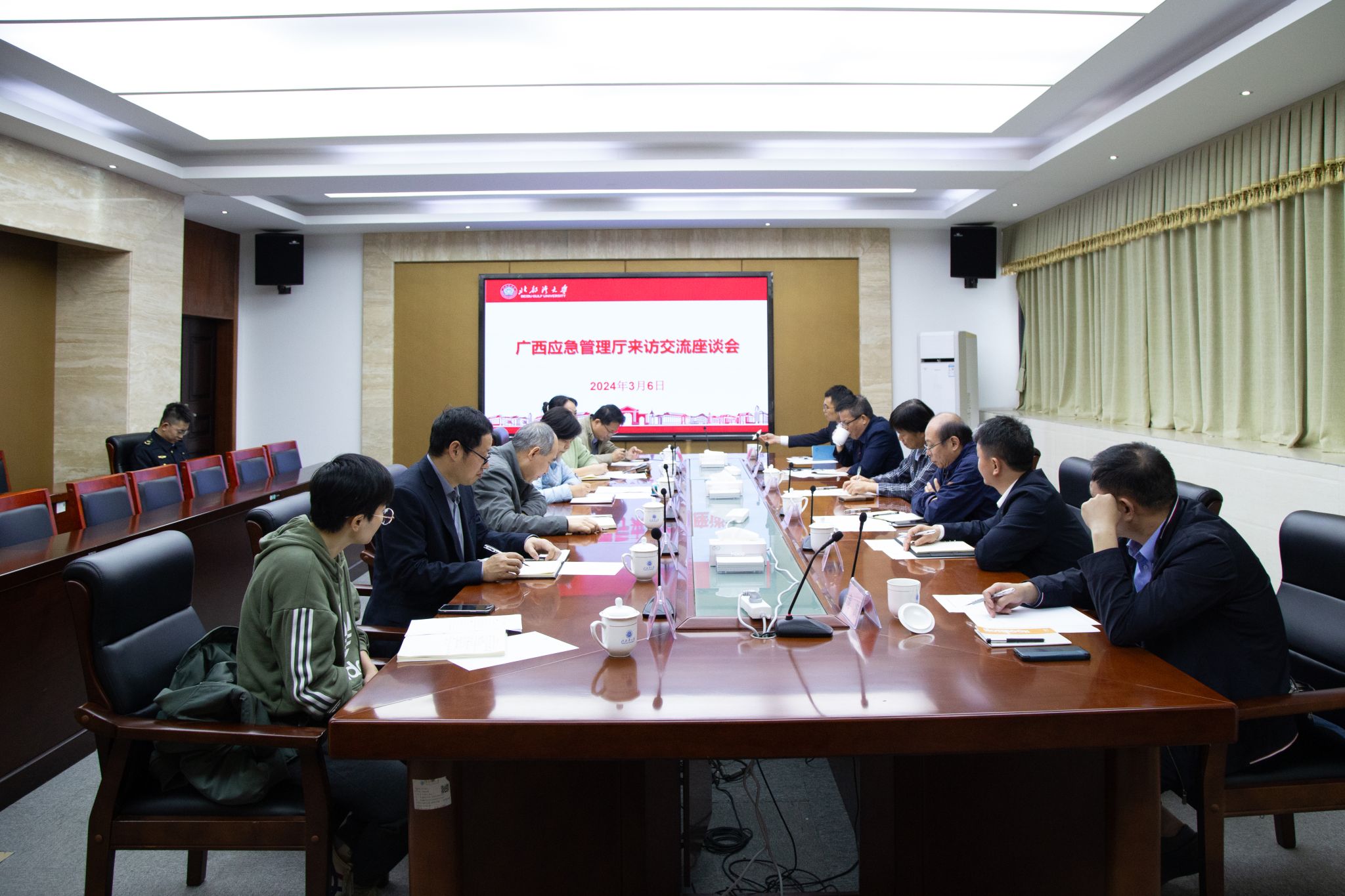 3月6日上午,广西壮族自治区应急管理厅副厅长卢小萍一行到校调研。校党委常委、副校长陈丹陪同调研并出席座谈会。