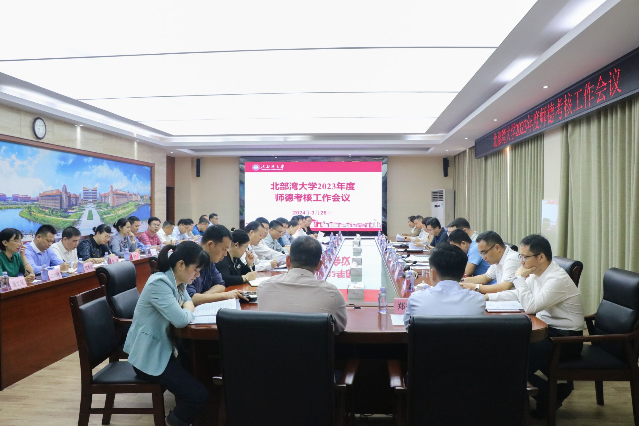 会上,党委教师工作部部长朱芳阳对2023年度师德考核情况进行汇报说明;学校师德考核委员会成员依据《北部湾大学教师职业道德考核办法》文件精神,完成了2023年师德考核工作。