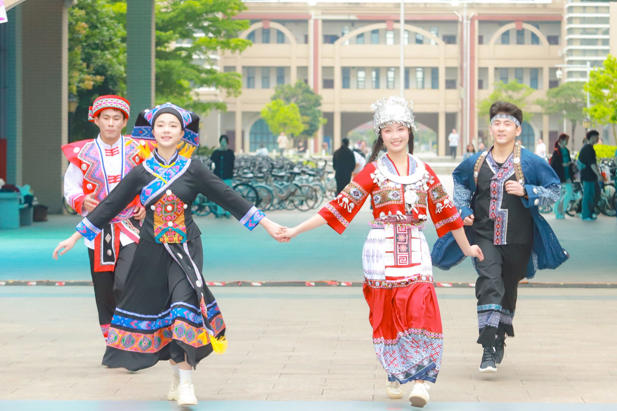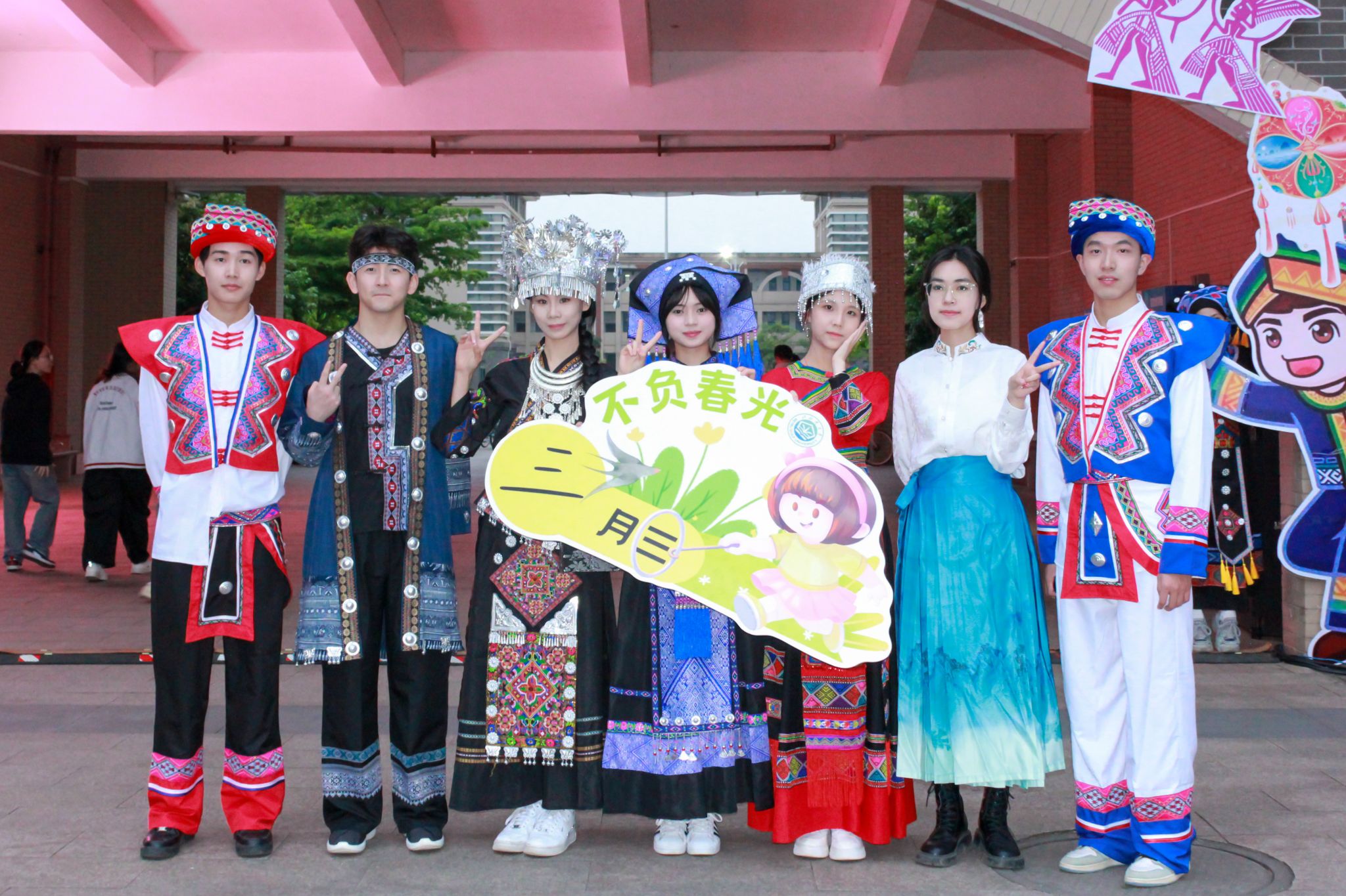“踏平了山路唱山歌,撒开了渔网唱渔歌,唱起那牧歌牛羊多呀,多过了天上的群星座座……”4月9日,独具广西特色的《大地飞歌》唱响在湾大校园。在“广西三月三”到来之际,学校精心组织了“潮起三月三 奋进新征程”民俗游园会,丰富多彩的民俗文化体验活动和精彩的民俗文艺演出吸引了师生们驻足观看体验,校党委书记徐华蕊、校党委副书记陈磊也来到现场,和师生一同体验民俗文化、观看文艺演出。
