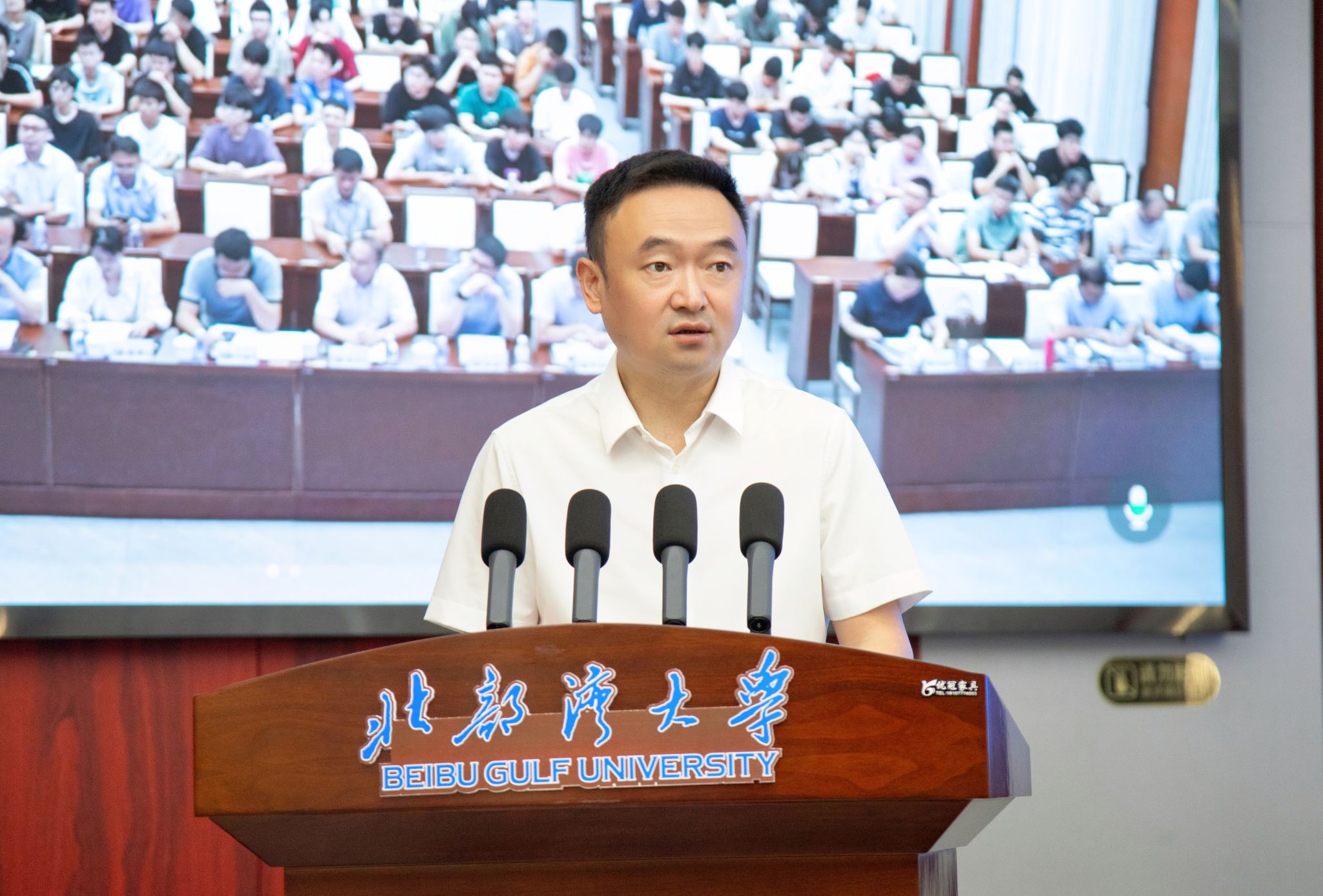 苗剑表示,北部湾“一湾相挽十一国”,是广西经济最具活力的地区。学校坚持扎根北部湾、立足广西、面向南海与东盟各国,经过多年的努力和发展,综合办学水平显著提高,尤其是船舶与海洋工程专业在全国高校软科实力排名中逐年提升。我校在前期智慧港口交通运输学科办学成果进一步凝练的基础上,联合与会各成员单位成功申报获批了“中国-东盟智慧港口综合枢纽技术创新学院”。学校将以此为契机深化产教融合,进一步加强政产学研校企合作,与共建单位齐心协力、对标对表,努力把“中国-东盟智慧港口综合枢纽技术创新学院”建设成为示范性技术创新学院,树立产教融合协同育人新标杆。