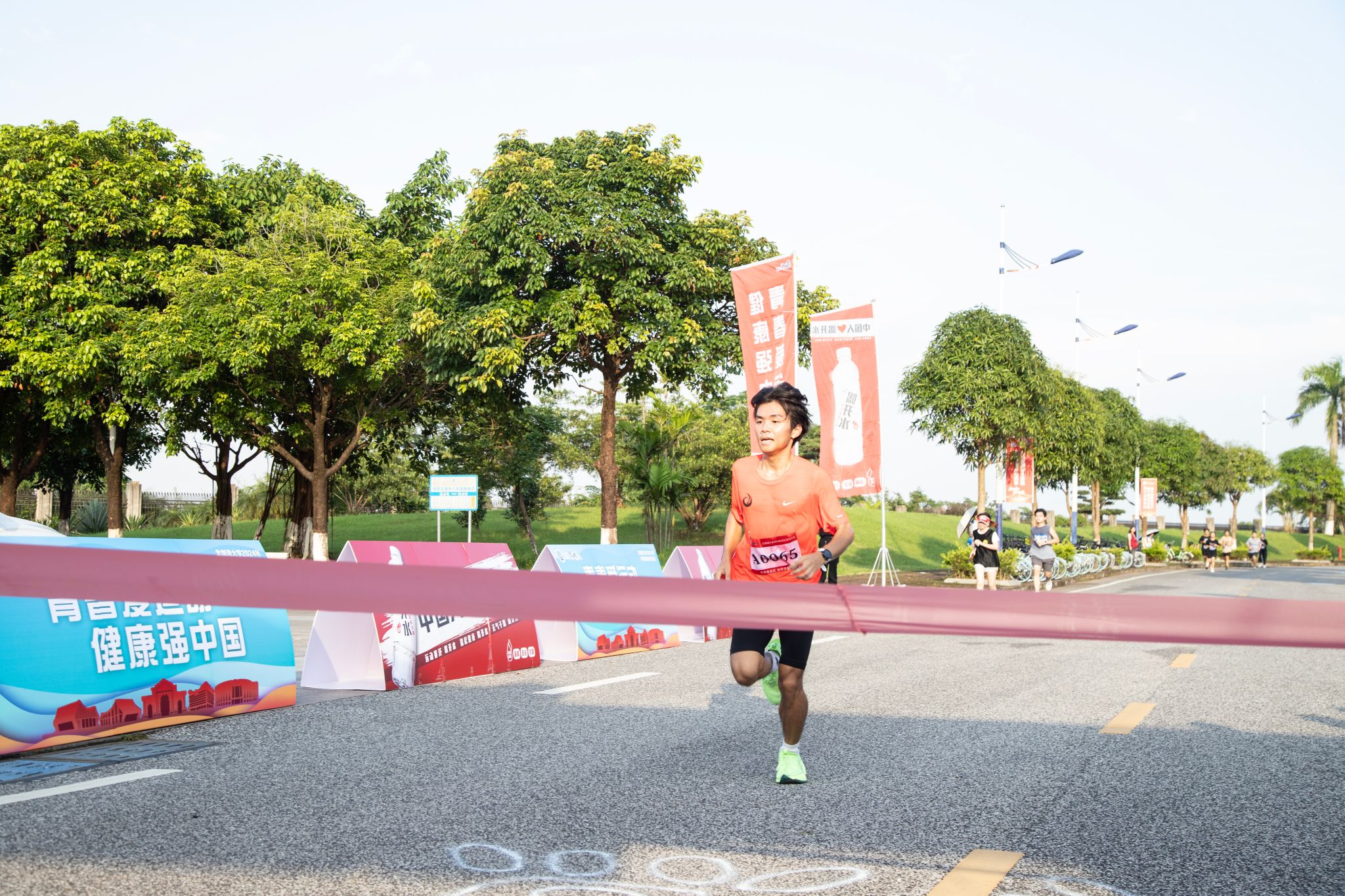 一时间,在学校东门、体育馆、平陆运河林、西区田径场边等规定路线上,随处可见斗志昂扬、激情奔跑的身影。师生们迈着矫健的步伐,奔跑出属于自己的节奏、奔跑出属于湾大人的风采。最终,398名选手完成所在组别的赛程,以昂扬的姿态跨越南门终点线。