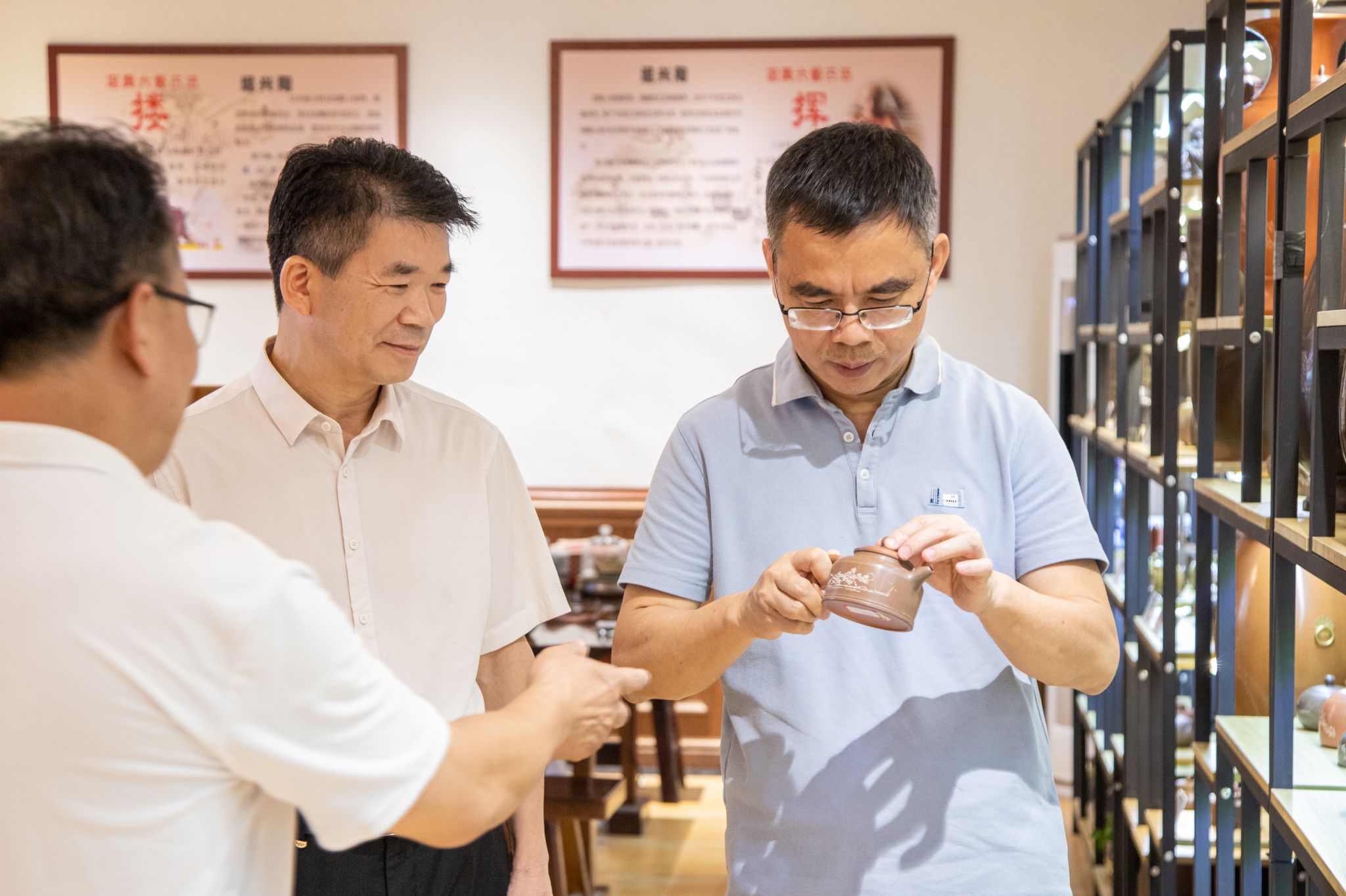 7月3日,驻校纪检监察组组长、校党委常委、纪委书记谢立平率队赴钦州市政协书画院参观“翰墨同心 山明水秀”卢建明闭宗庭绘画作品及闭宗庭陶艺作品展并调研相关工作。学校党委常委、党委宣传部部长裴以明,学校陶瓷与设计学院院长周晓峰,钦州市工业和信息化局党组成员、副局长陈立伟陪同调研。