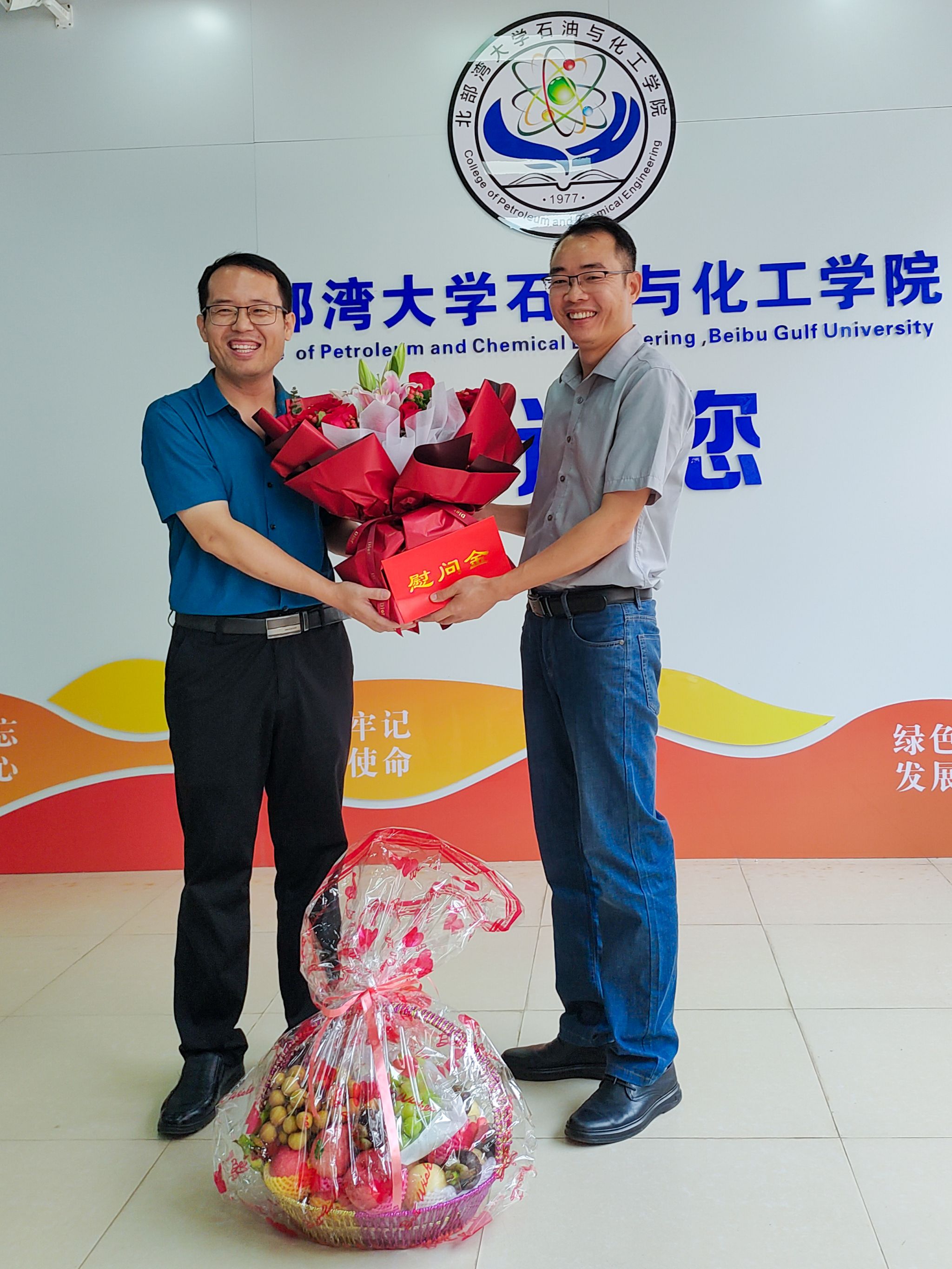 副校长尹艳镇(左)看望慰问石油与化工学院一线教师代表