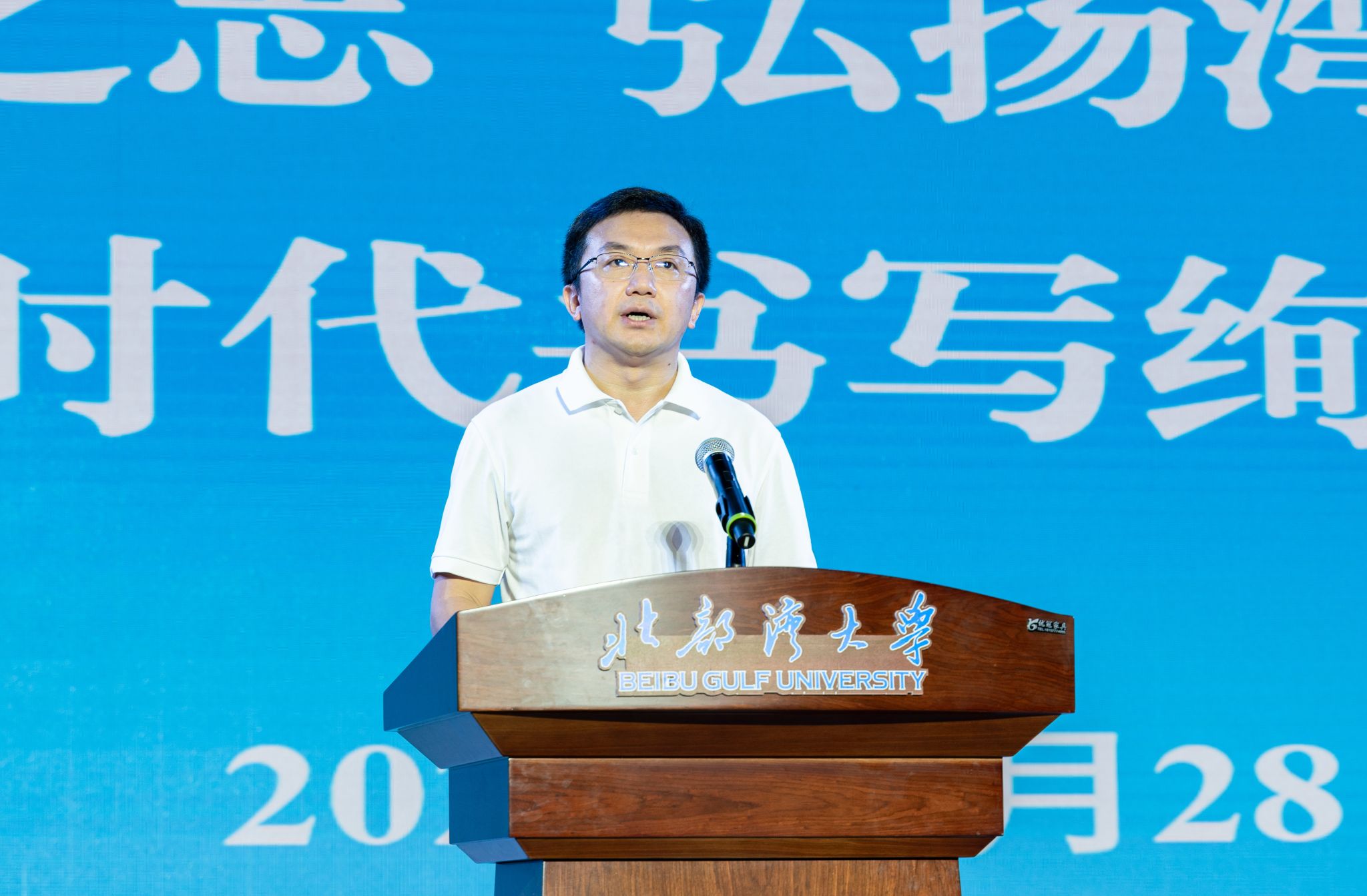 徐华蕊传达了党的二十届三中全会精神和习近平总书记在全国教育大会上的重要讲话精神,从奥运竞技赛场、脱贫攻坚战场、科技攻关岗位、抢险救灾前线、保卫祖国哨位等各领域青年榜样的奋进风采说起,带领同学们回顾了学校的发展奋斗历程,指出学校的发展与国家海洋强国战略紧密相连,引导同学们明确当代青年的责任和使命,从北部湾大学启程,将“敢于挑战不可能、敢于自我革新、敢于向困难说不”的精神融入大学学习生活中,做湾大精神的传承者,做人才强国的践行者,做绚烂青春的书写者。