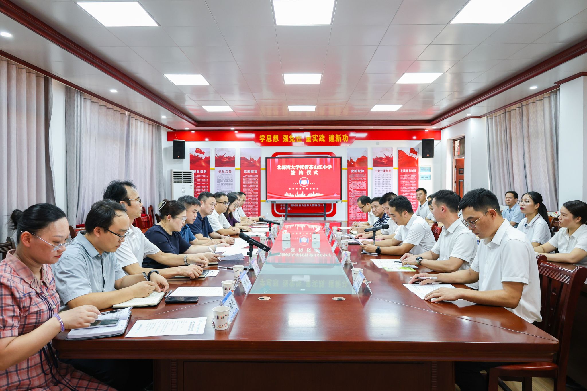 9月29日下午,北部湾大学托管钦南区茶山江小学(北部湾大学附属小学)签约仪式在茶山江小学三楼会议室举行。校党委副书记、校长苗剑,校党委常委、副校长马秀明,钦南区委副书记、区政府党组书记、区长肖利富,钦南区委教育工委书记、区教育局党组书记、局长黄建及双方学校相关部门负责人参加仪式。钦南区人民政府党组成员、政府办主任蔡春华主持。