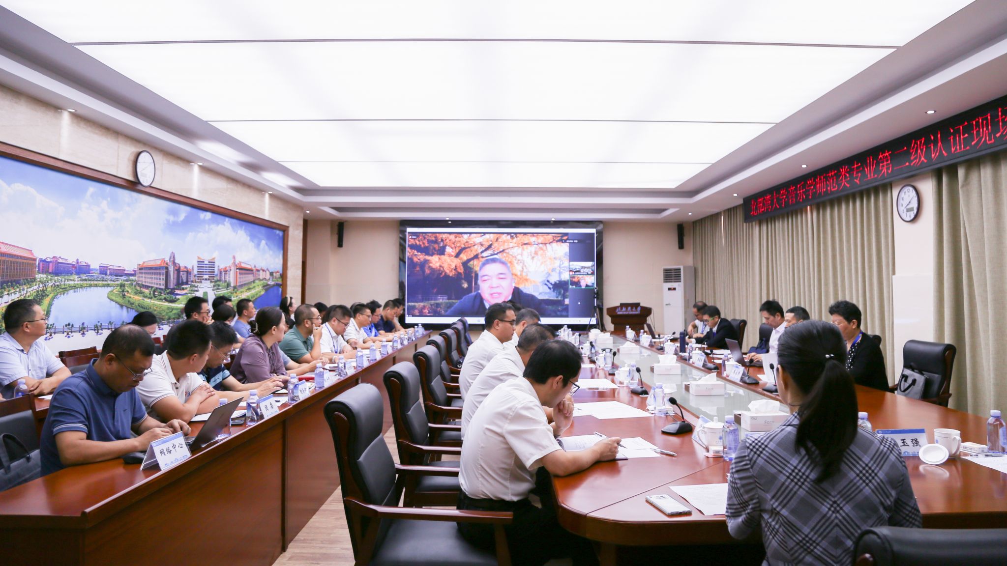 副校长尹艳镇介绍了学校师范教育发展历程、体系现状、改革举措、建设成效、人才培养目标定位、教师教育定位和专业认证开展等方面情况。音乐学专业负责人曾美良就音乐学师范教育等情况作补充说明。