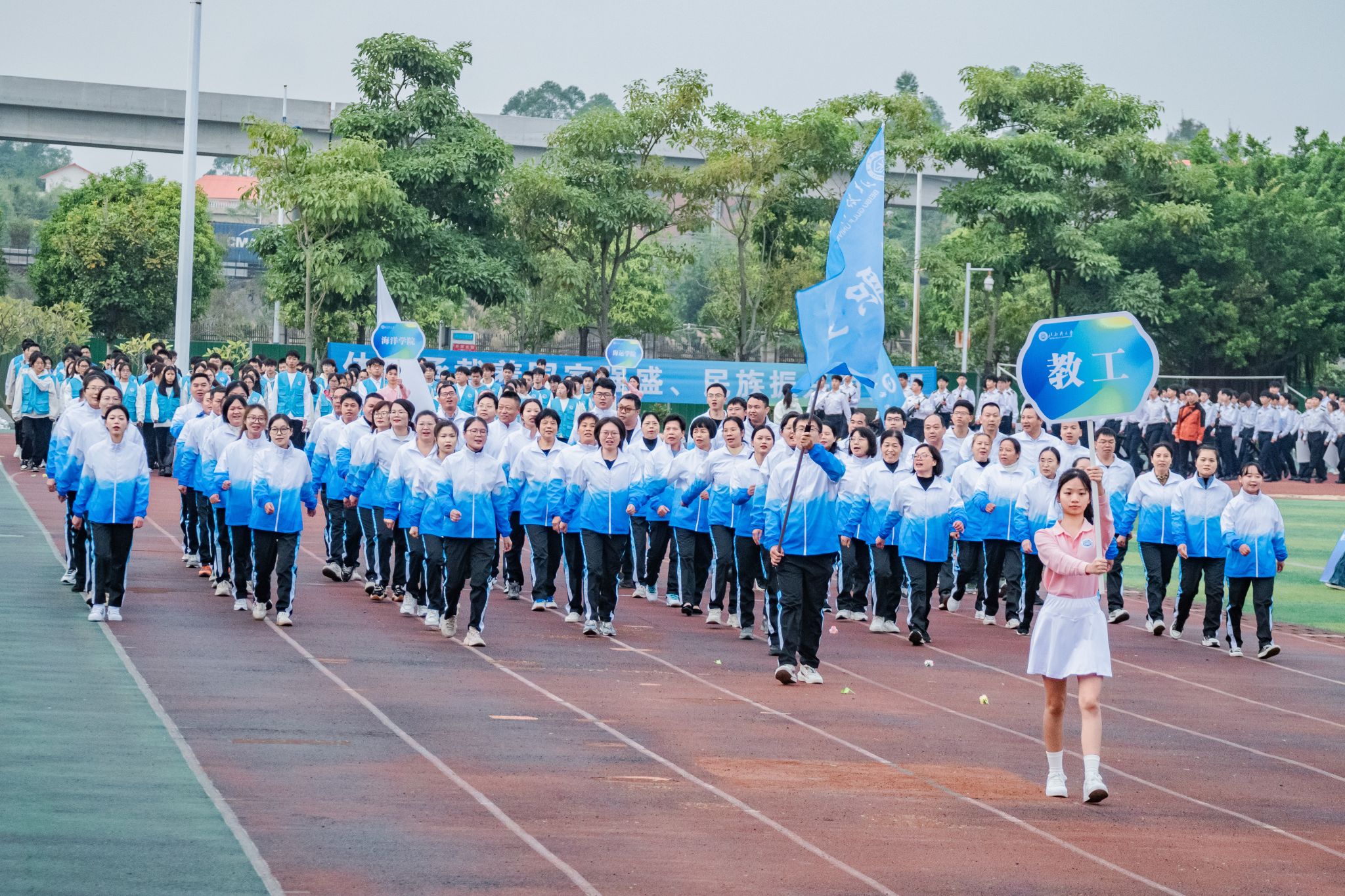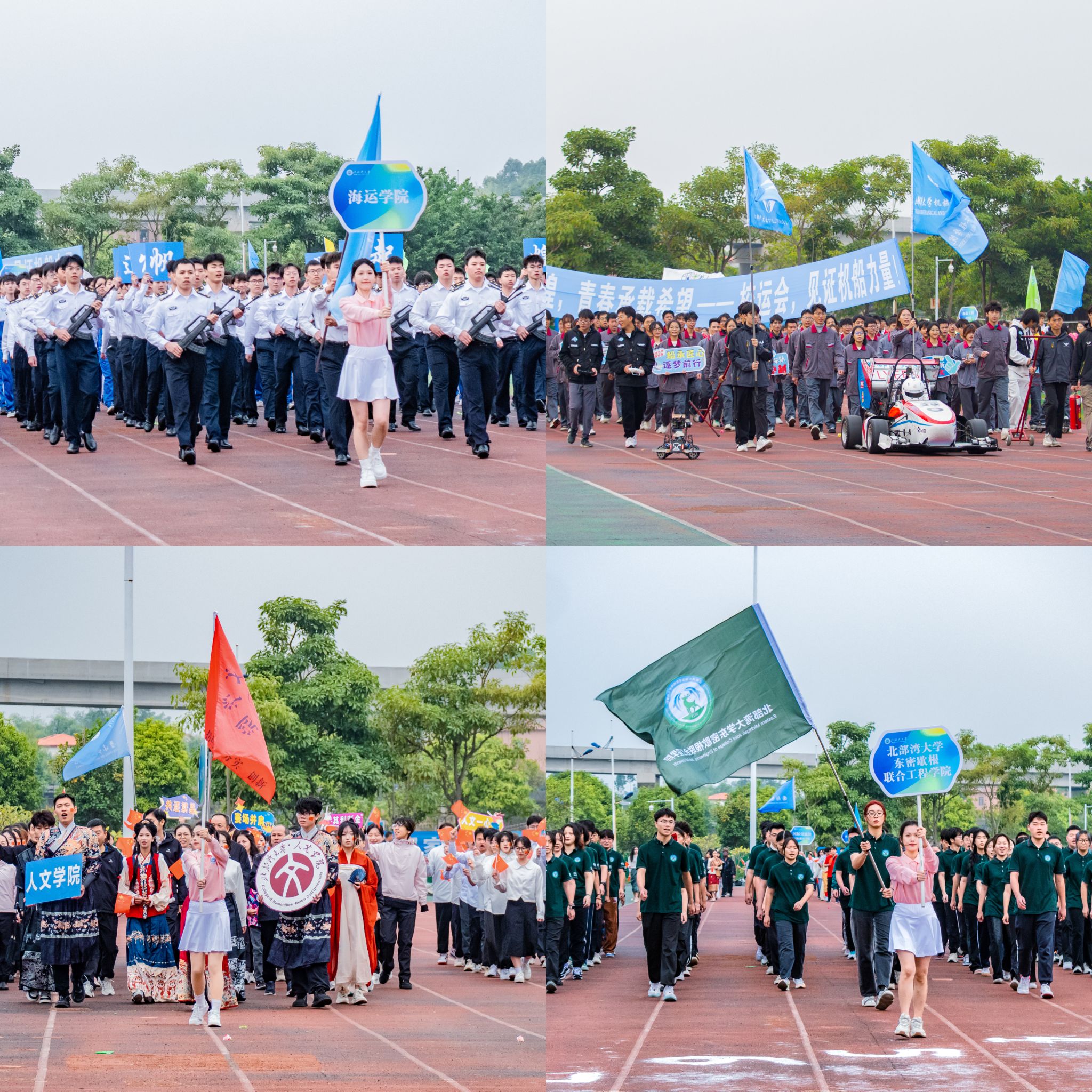 在激昂的《运动员进行曲》中,26支方队依次入场。国旗引路,会徽悦动,校旗招展,花团锦簇,院旗飘扬,口号嘹亮。师生队员代表们迈着整齐划一、铿锵有力的步伐步入会场,展示各学院特色,展现了饱满的热情、昂扬的斗志和蓬勃的朝气。