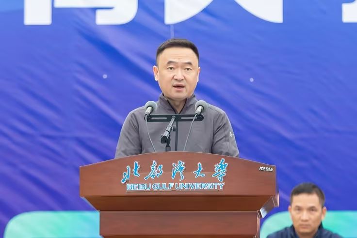 校党委书记徐华蕊宣布北部湾大学第四届体育节暨第十五届田径运动会开幕。