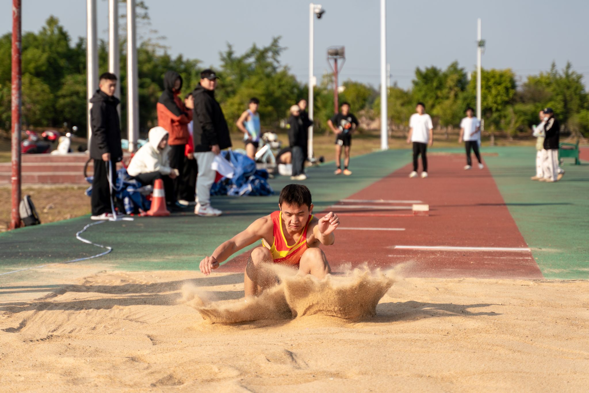 据悉,本届体育节大学生组共设置6个大项(田径、篮球、足球、羽毛球、游泳、马拉松)的比赛项目。其中,男子甲组3000米和男子甲组铅球两个项目刷新了纪录。(陈嘉骅 李兴宸 曹英姿 摄)