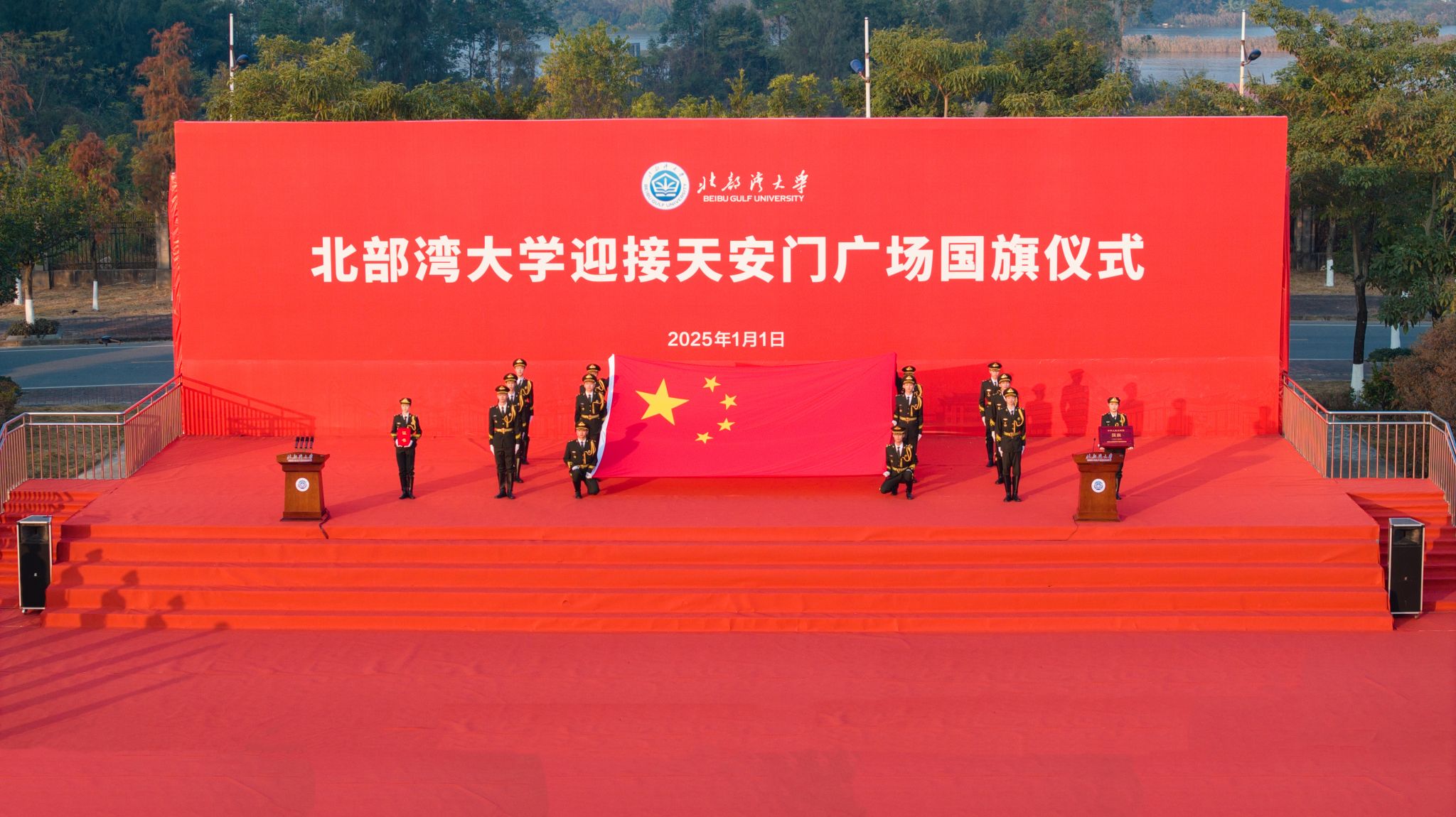 红日初升,其道大光。2025年1月1日,新年的第一缕阳光照耀平陆运河之畔的北部湾大学校园。在学校西区田径场,北部湾大学迎接天安门广场国旗仪式隆重举行。学校全体在家校领导;钦州市委教育工委书记,市教育局党组书记、局长赖廷耀;钦州市委宣传部常务副部长邓辉;钦州市社会各界代表;钦州市义务教育师生代表;学校全体中层干部、全体辅导员、全体思政课教师、各学院师生代表参加仪式,礼迎国旗,共同迎接崭新的2025年,为祖国母亲送上最真挚的新年祝福。