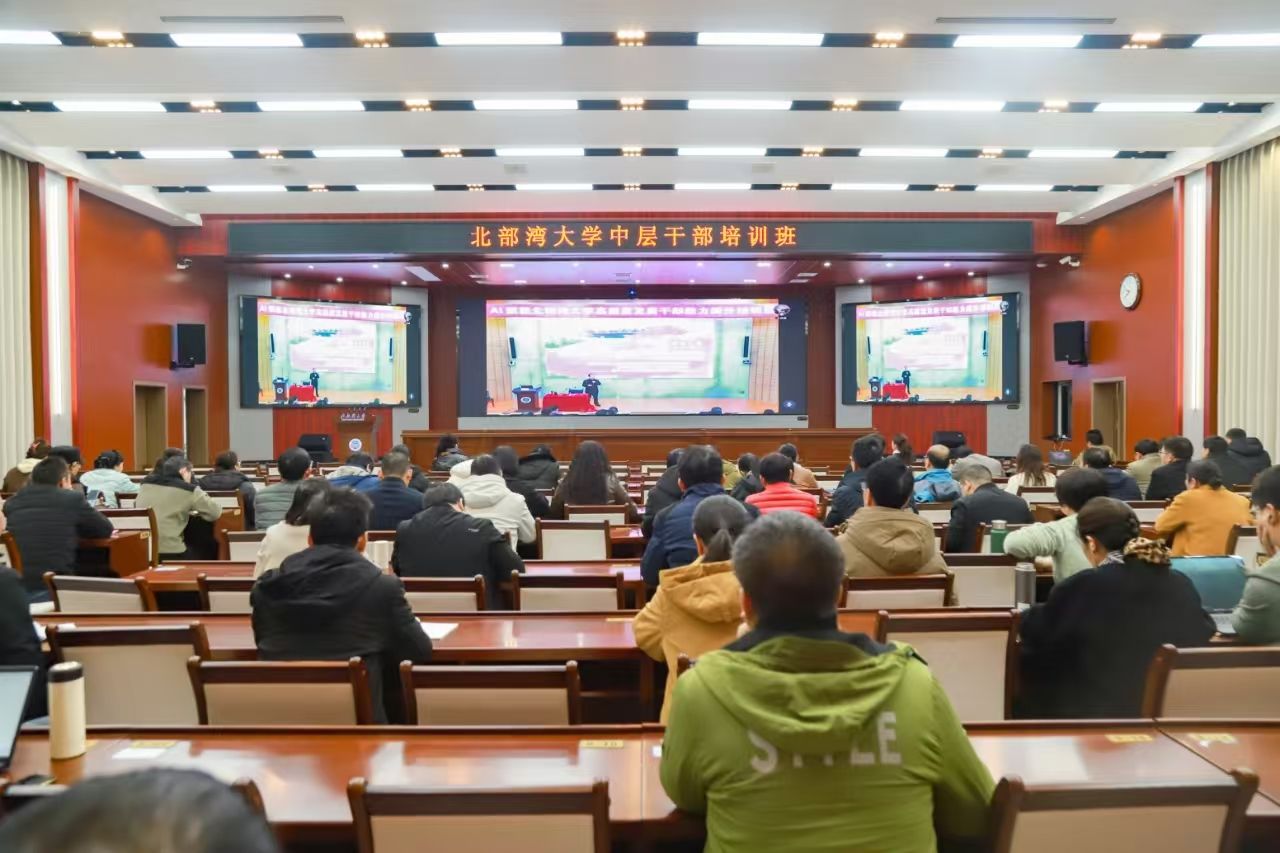 2月27日,AI赋能北部湾大学高质量发展干部能力提升培训班在深圳大学粤海校区科技楼报告厅开班。校领导徐华蕊、苗剑、唐高华、梁智、陆衡、马秀明、陈丹及全体中层干部、优秀教师代表参加培训。深圳大学党委常委、副校长汪永成出席开班仪式并致辞。