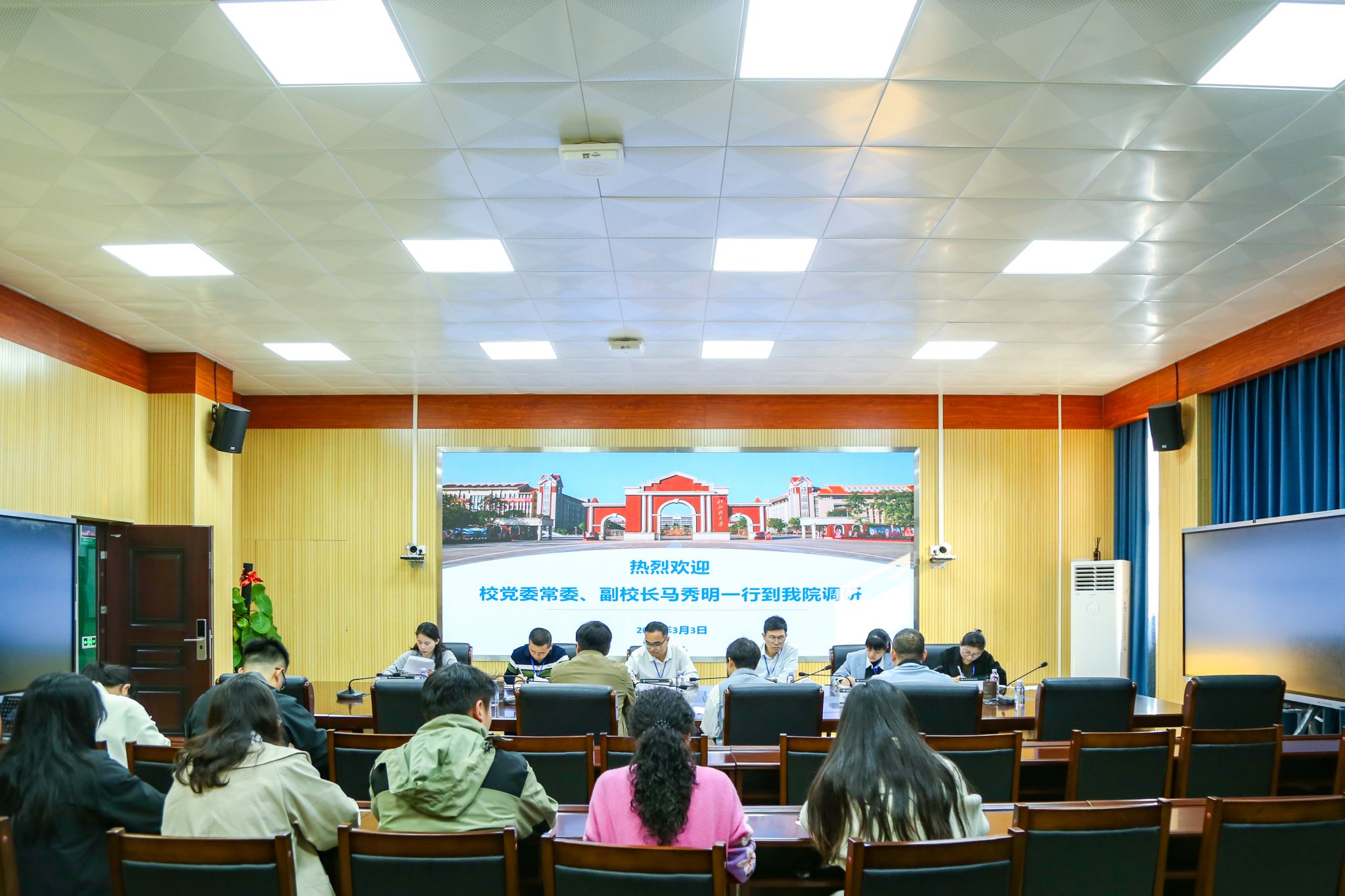 课后,校领导亲切与师生交流,现场反馈教学意见,并分别到各学院开展开学工作检查,了解开学准备工作和师生返校情况,听取学院在人才培养、学科建设、教学科研、学生就业等方面的工作汇报及下一步工作计划,并围绕如何进一步提升人才培养质量,推动学校高质量发展进行了深入探讨。(李兴宸 李美晴 陆绿 胡海培 董丽莹 吴佳潞 摄)