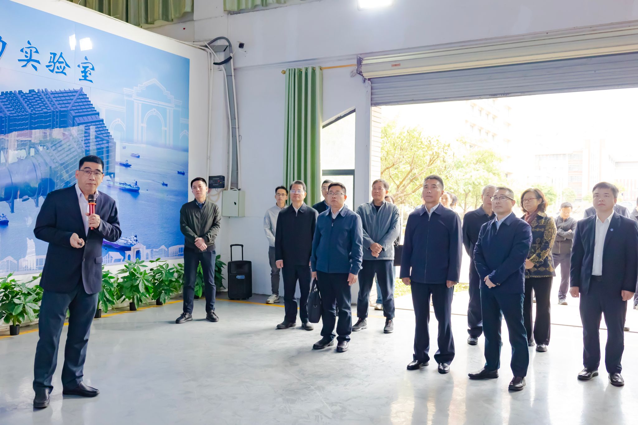 王乃学(右三)实地考察船舶动力与智能化焊接实验室建设情况,徐华蕊(左三)陪同