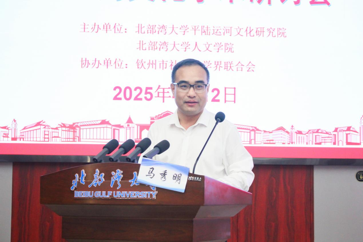 马秀明在致辞中指出,平陆运河是西部陆海新通道的骨干工程,对促进区域经济协同发展、丰富区域文化建设、推动高水平对外开放具有重要意义。他表示,北部湾大学作为运河沿线高校,积极服务国家战略需求,提供科研场地,组建多学科团队开展生态保护、航运安全等研究,成立专项研究院深挖运河文化价值,深度参与运河科研攻关、文化建设与人才培养。希望此次研讨会汇聚各界智慧,为平陆运河经济带建设,为广西实施向海图强战略以及推动区域经济社会高质量发展注入强大动力。