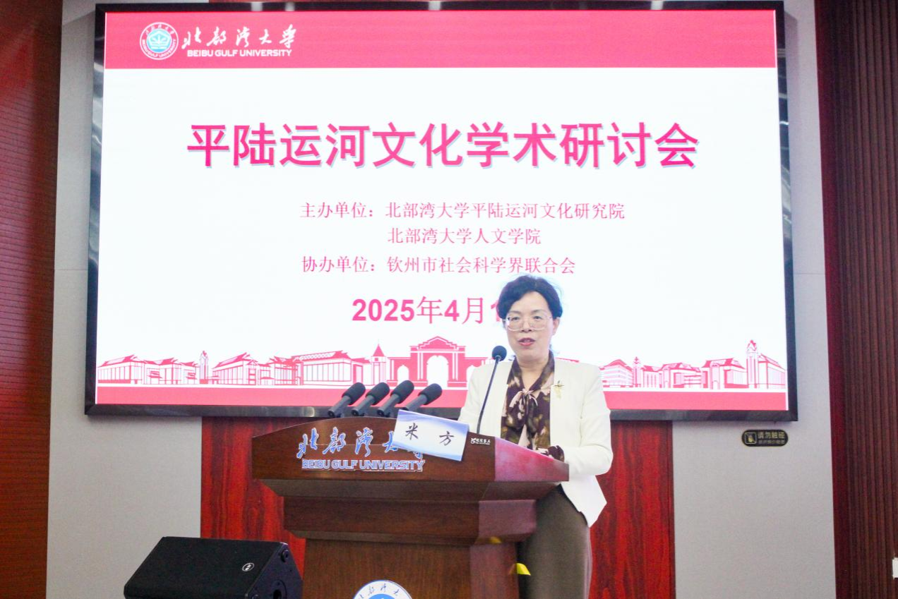 4月12日,北部湾大学首届平陆运河文化学术研讨会在办公楼一楼报告厅举行。会议由北部湾大学平陆运河文化研究院、人文学院、北部湾海洋发展研究中心联合主办,钦州市社会科学界联合会协办。校党委常委、副校长马秀明,钦州市社科联副主席米方出席开幕式并致辞。校党委常委、副校长陈丹及校内外专家学者近百人参会。