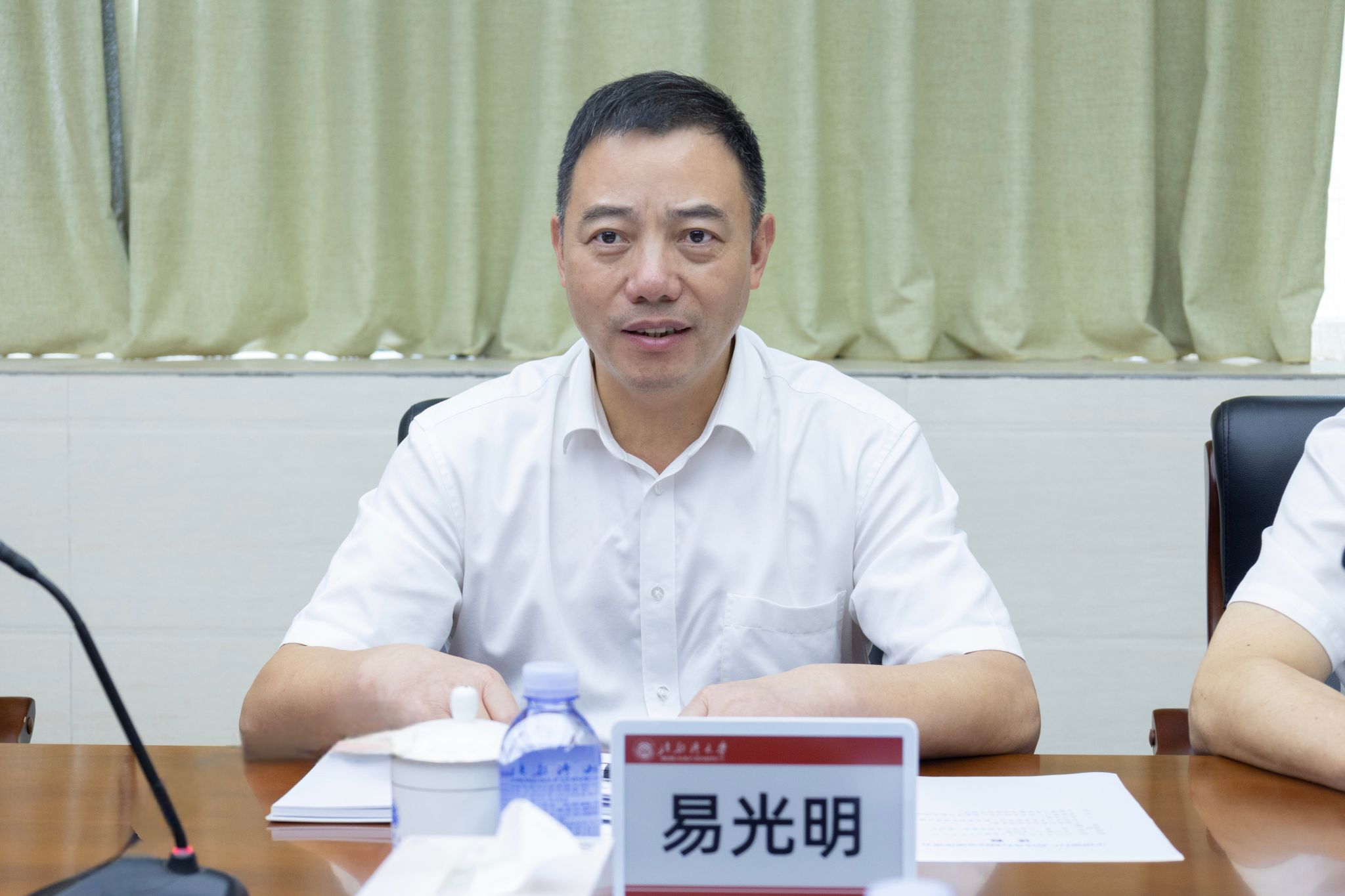 5月20日,中国银行广西区分行行长、党委书记易光明,副行长、党委委员李志勇一行到校交流座谈。校党委书记徐华蕊,党委副书记、校长苗剑出席座谈会。校党委常委、副校长梁智主持会议。