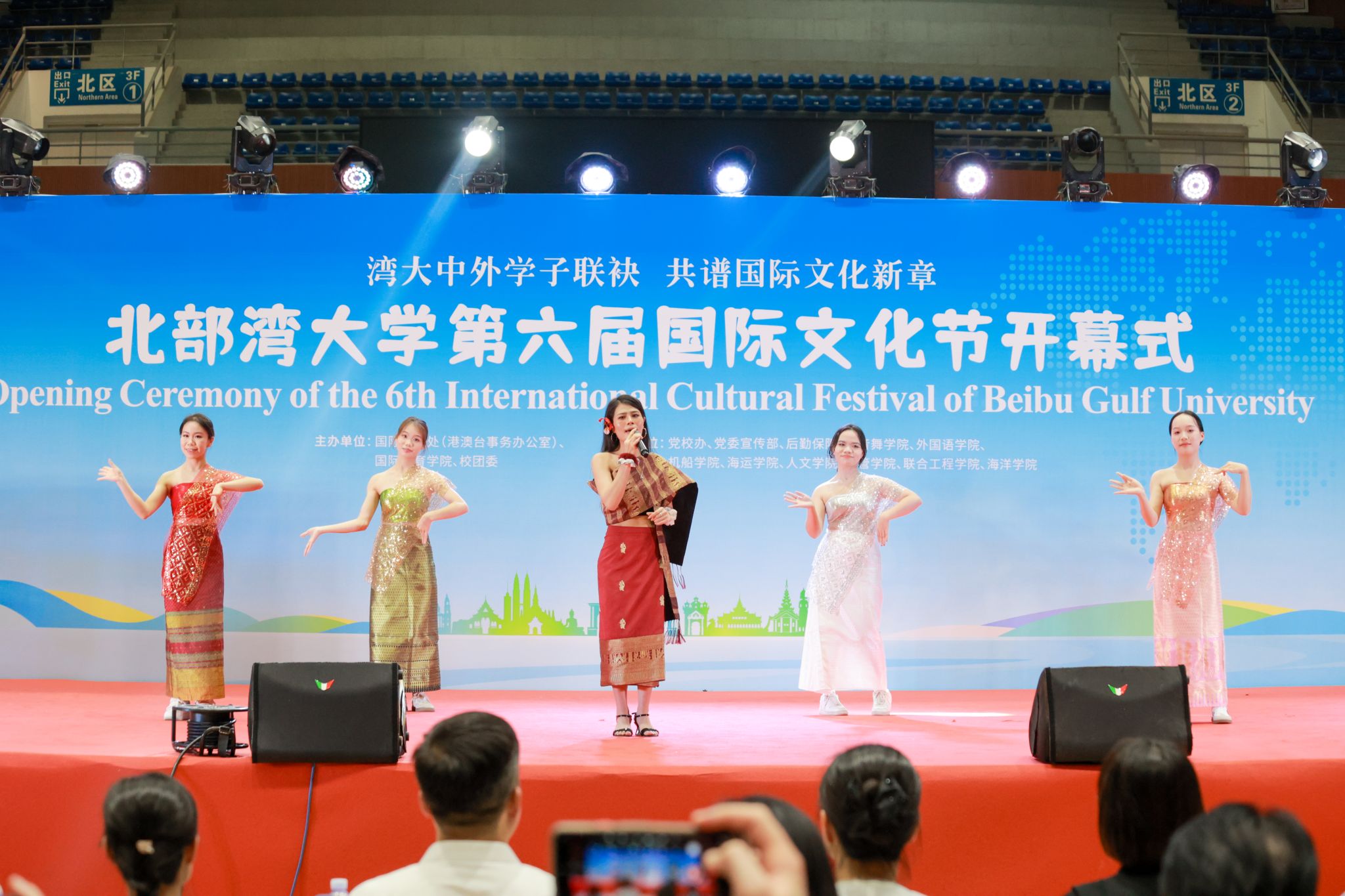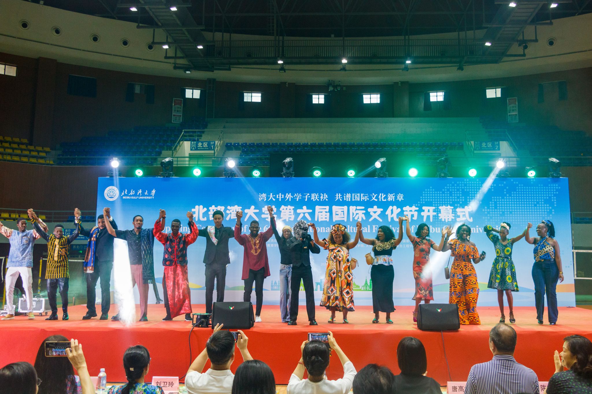 5月20日,以“湾大中外学子联袂,共谋国际文化新章”为主题的北部湾大学第六届国际文化节在学校体育馆开幕。校党委副书记唐高华,党委常委、副校长陆衡、陈丹,以及钦州市相关单位代表、学校各学院相关负责人、中外师生代表共同参与活动。