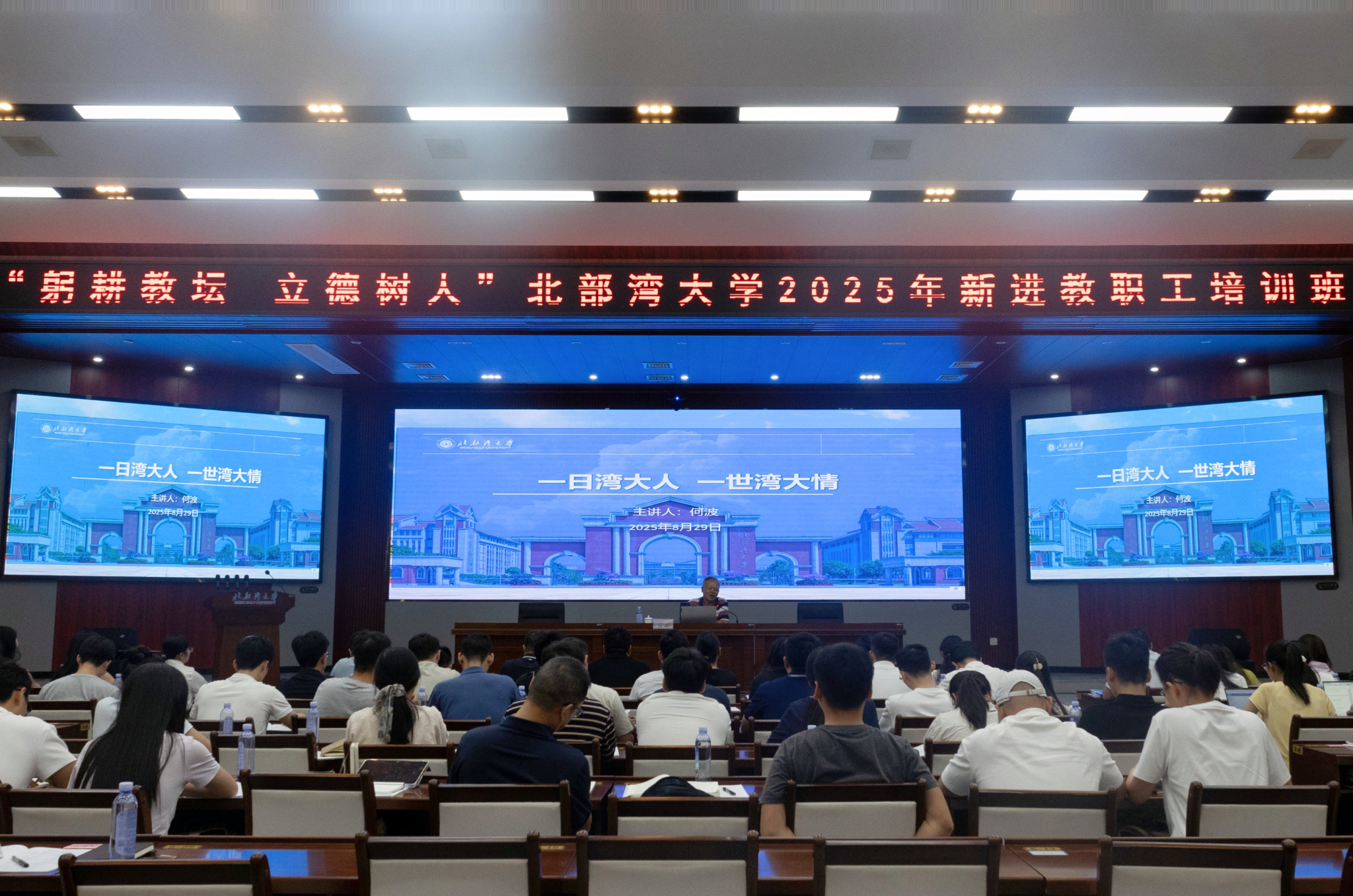 8月28日至29日,学校在办公楼一楼报告厅为72名新教职工举办入职培训。校党委副书记、校长苗剑,校党委副书记唐高华,自治区纪委监委驻北部湾大学纪检监察组组长、校党委常委、纪委书记谢立平,校党委常委、副校长陆衡以及有关职能部门负责人分别作专题报告。