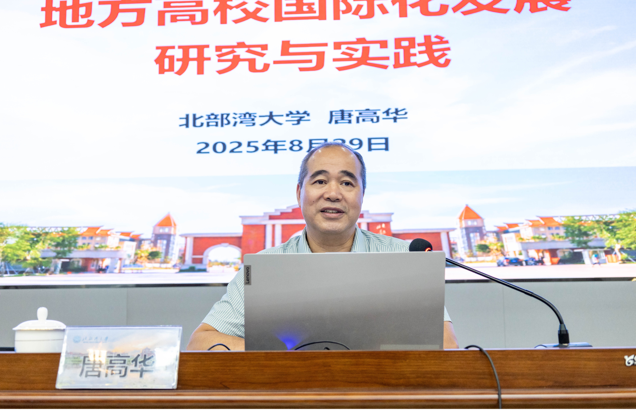 唐高华介绍了学校国际化办学所取得的成果,并从内涵理解、现实意义、实践探索及未来展望等方面,全面解读了高等教育国际化的发展路径。他勉励全体新教职工高度重视并主动融入学校国际化建设工作,积极走好“应用型转型、国际化升级”之路,为学校国际化建设发展和人类命运共同体建设贡献力量。