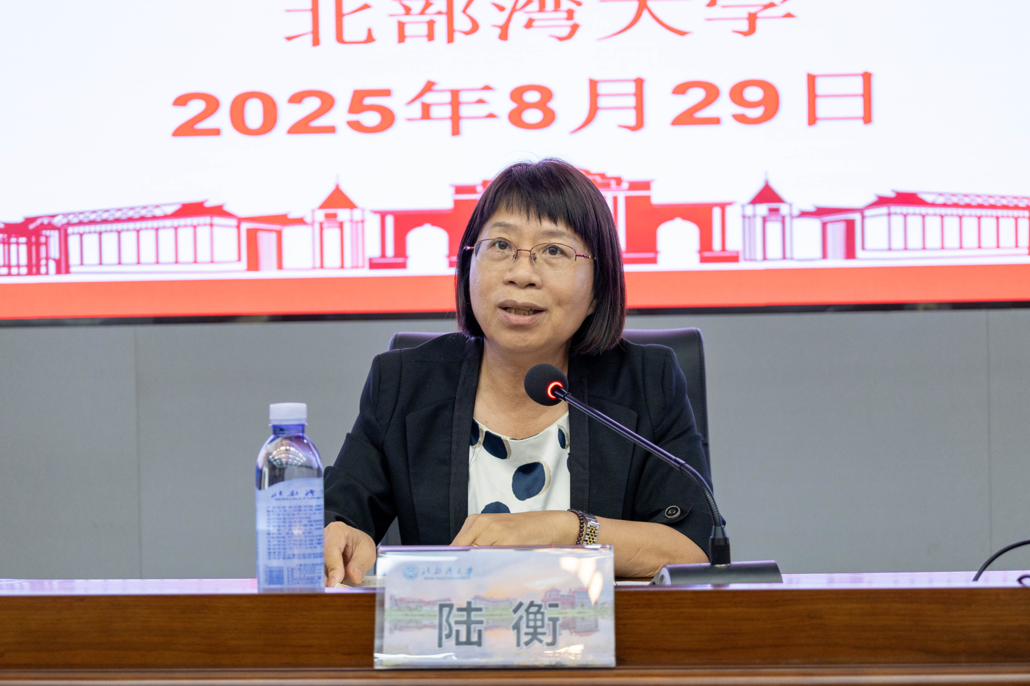 苗剑以“立足广西,面向东盟,建设海洋特色鲜明的应用型大学”为主题,系统梳理了学校的办学历程与成绩,全面阐释了学校“海洋性、应用型、国际化”的办学特色,并深入分析了当前学校发展面临的重大机遇和未来发展的新挑战。他强调,新教职工应牢固树立OBE教育理念,持续提升教学科研与应用实践能力,敢于创新、追求卓越,共同为培养高素质人才、推动学校高质量发展贡献力量。