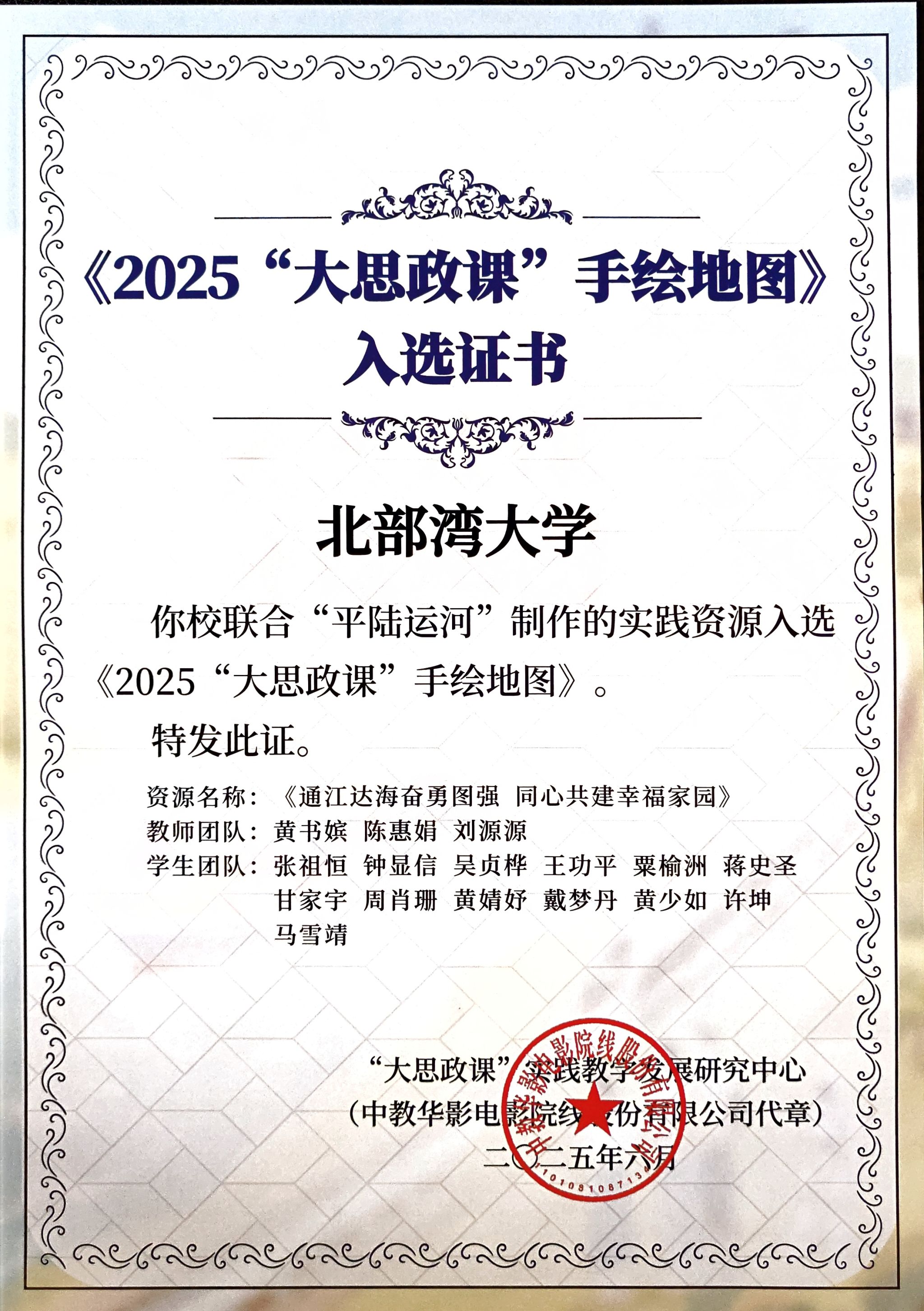 近日,教育部“大思政课”实践教学发展研究中心公布《2025“大思政课”手绘地图》入选名单。我校马克思主义学院的3名教师和理学院、音乐舞蹈学院的13名学生共同提交的实践资源作品《通江达海奋勇图强 同心共建幸福家园》成功入选,并纳入“数字地图”体系。“大思政课”实践教学发展研究中心特向我校发来感谢信,充分肯定我校师生在实践教学资源建设中的积极贡献。