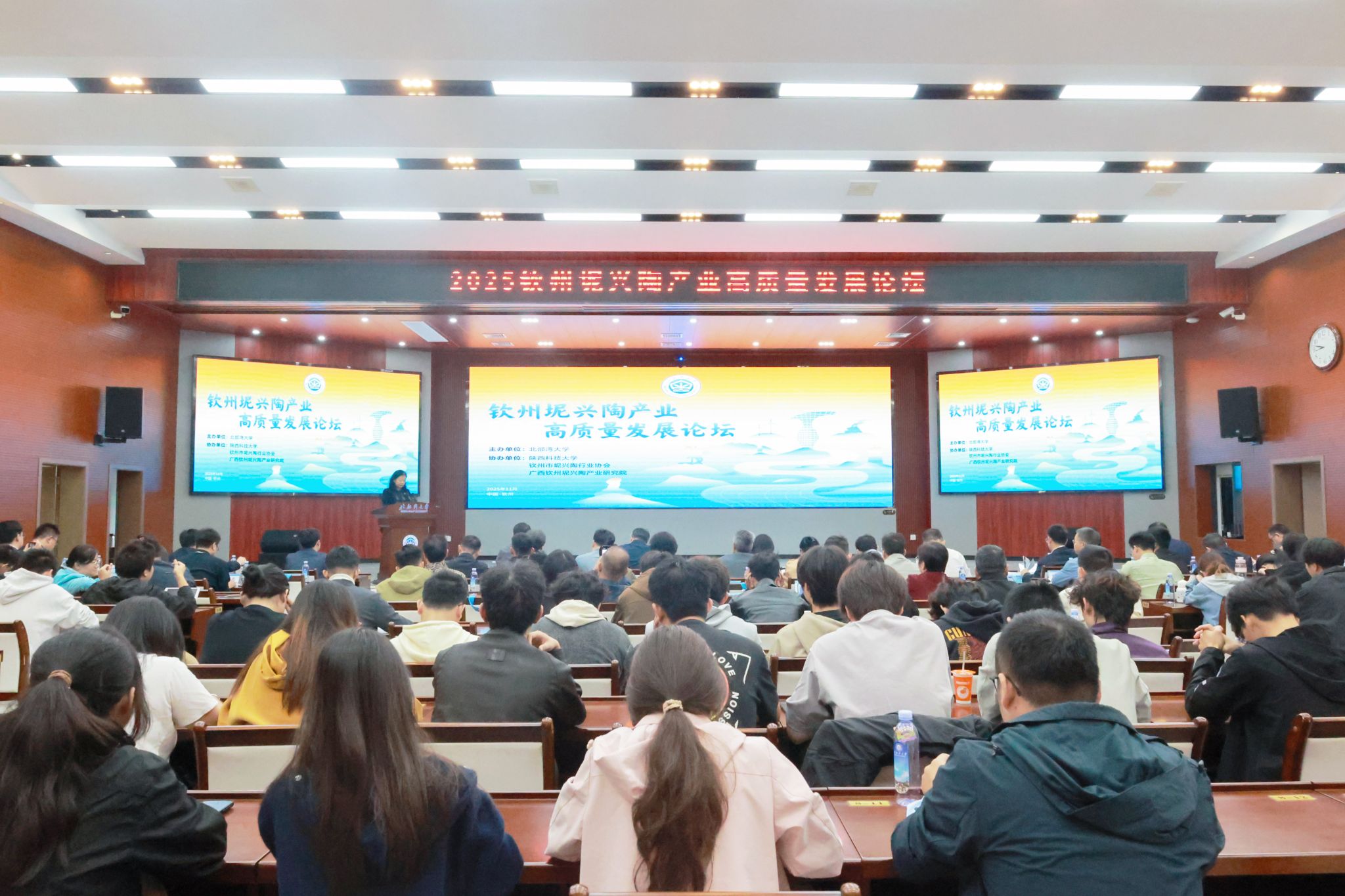 11月2日,由北部湾大学主办,陕西科技大学、钦州市坭兴陶行业协会、广西钦州坭兴陶产业研究院协办的“2025年钦州坭兴陶产业高质量发展论坛”在学校办公楼一楼报告厅举行。国家自然科学基金委员会工程与材料科学部副主任赖一楠,钦州市人民政府副市长王文泽,校党委常委、副校长陈丹等出席论坛开幕式并致辞。