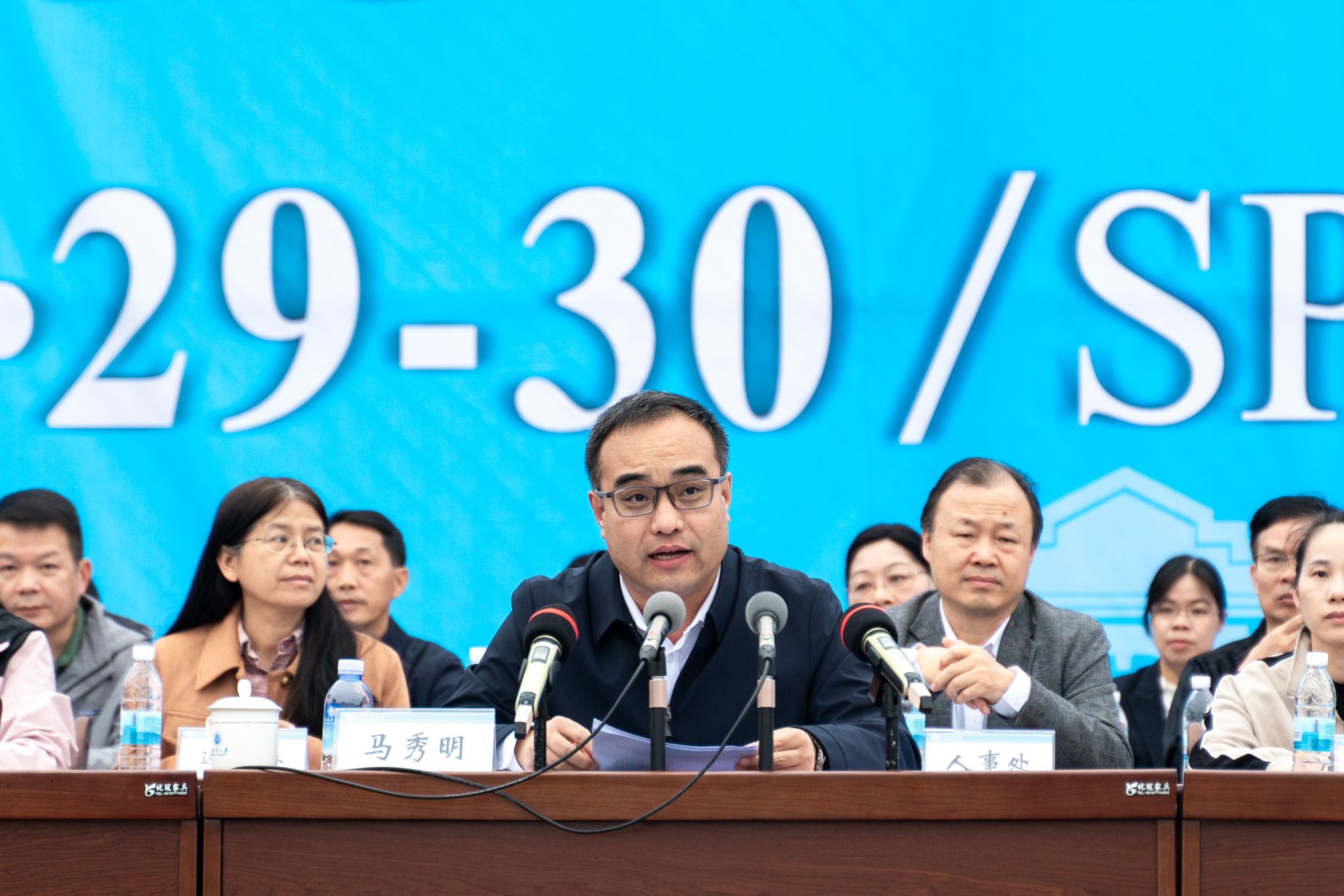 马秀明代表学校对本届体育节暨田径运动会的成功举办表示热烈祝贺,并向运动员、裁判员及工作人员致以诚挚感谢。他指出,本届运动会充分发挥了体育在落实立德树人根本任务中的重要作用,展现了北部湾大学师生昂扬向上、奋勇拼搏的精神风貌,三项赛事纪录被刷新,实现了运动成绩与精神文明的双丰收。他希望师生将赛场中展现的团结协作、锐意进取精神融入日常学习与工作中,为学校建设海洋特色鲜明的高水平应用型大学持续贡献力量。
