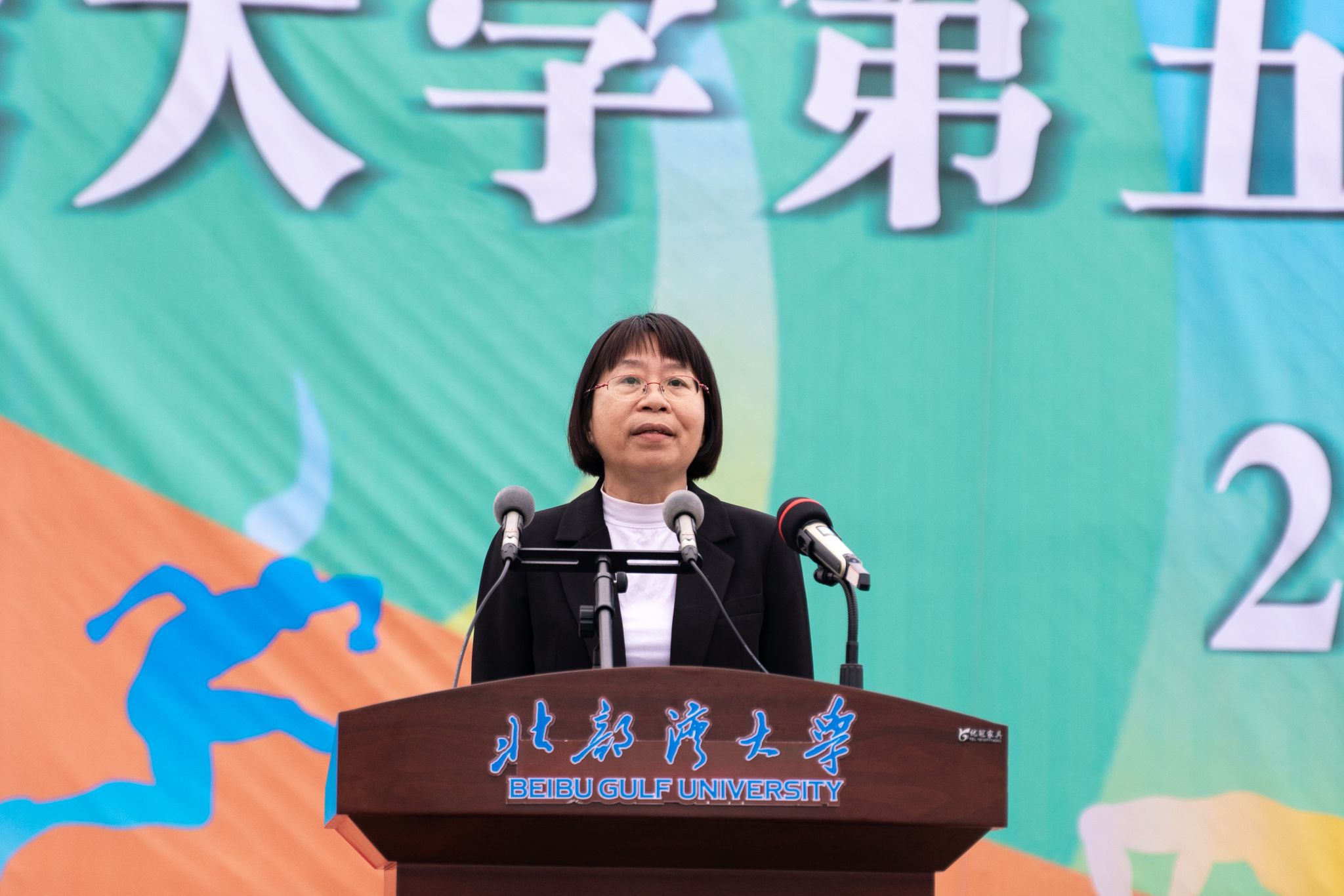 校党委常委、副校长陆衡宣布北部湾大学第五届体育节暨第十六届田径运动会闭幕。