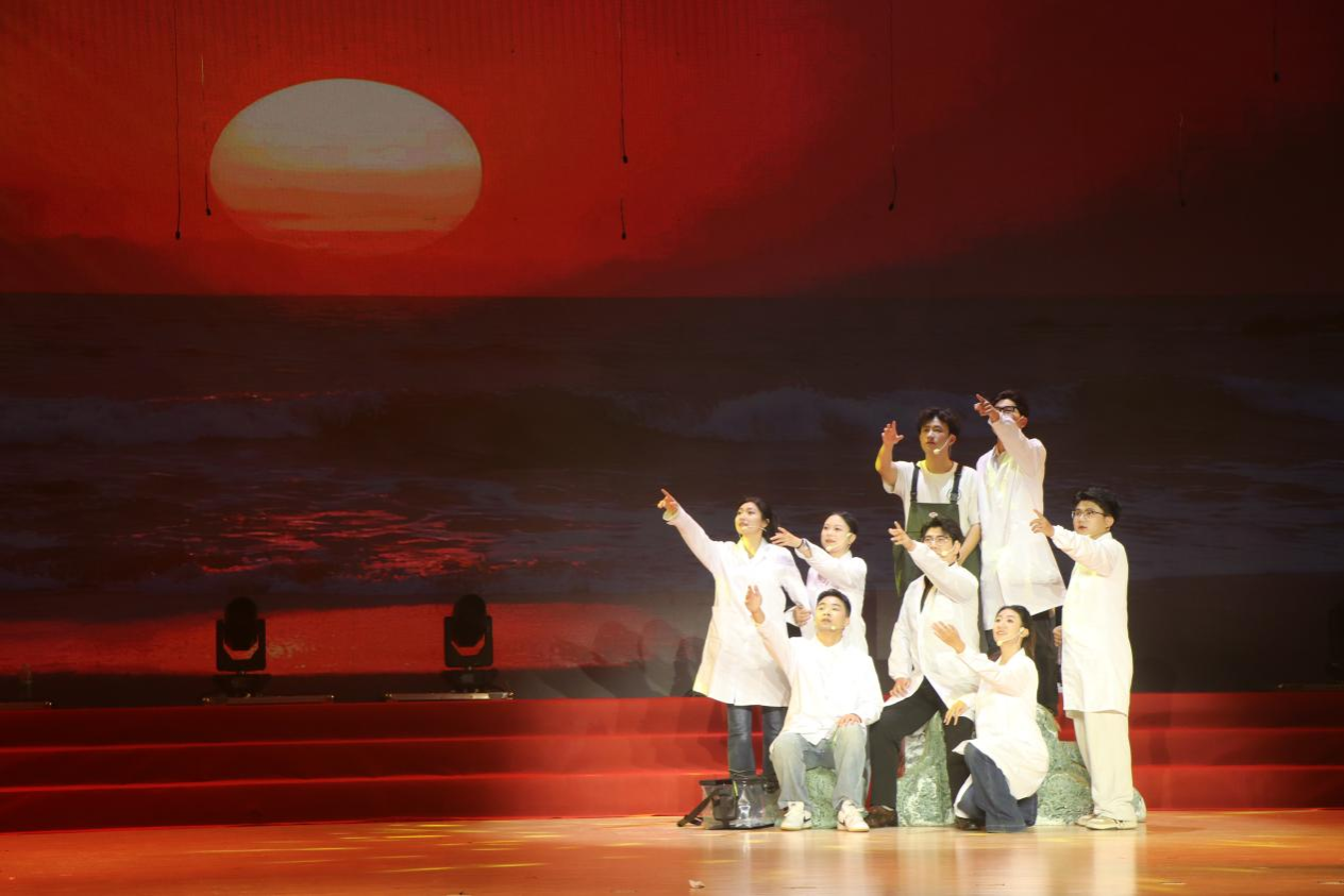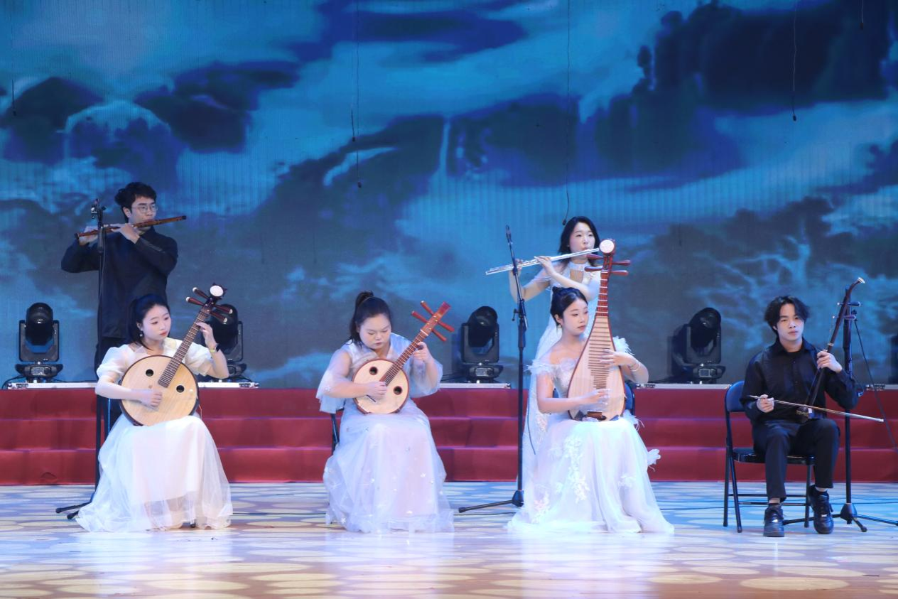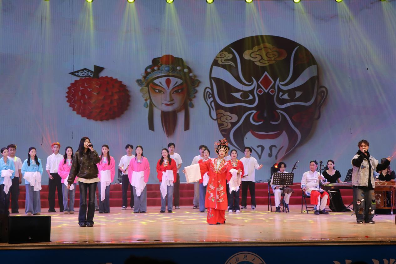 本场演出分为“源自溪流·初心如磐”“帆影书香·桃李成荫”“通江达海·故土情深”“向海图强·潮头放歌”四个篇章。在欢快的开场曲《欢腾的节日》中汇演拉开帷幕。第一篇章中,合唱《小河淌水》《鸳鸯・饮江》勾勒山水意境,舞蹈《黔・行》展现地域风情,粤剧《荔枝颂》彰显非遗魅力。第二篇章通过舞蹈《游园》、钢琴独奏《浏阳河》及小组唱《挑着好日子山过山》,传递师生情谊与成长感悟。第三篇章以民乐合奏《别》、独唱《我的深情为你守候》及舞蹈《渔光曲》抒发对故乡的深深眷恋。第四篇章则聚焦时代主题,音乐剧《守鲎》选段唤起海洋保护意识,民乐合奏《云宫迅音》展现青春创意,歌曲《蒲公英》《星辰大海》唱响毕业生对未来的展望。整场汇演生动呈现了2026届毕业生从入学初萌到学成启航的成长历程,展现了音乐舞蹈学院的育人成效和办学成果,在全场齐唱校歌中圆满落幕。
