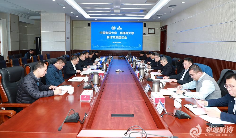 张峻峰对苗剑一行表示欢迎。他指出,“十四五”以来,两校以对口支援为契机,在学科建设、科学研究、师资队伍建设等方面开展了务实合作,取得了丰硕成果。他强调,北部湾大学是面向东盟国际交流的“桥头堡”,两校合作空间广阔。学校将进一步强化顶层设计,科学谋划对口支援工作,与北部湾大学共同制定实施“十五五”对口支援合作协议;强化协同联动,健全工作机制,推动双方部门、学院、学科、团队深入对接;强化效果导向,聚焦广西向海经济高质量发展要求,共同推动两校在国际合作办学、平陆运河建设、海洋资源开发保护、海洋智库建设等方面产出标志性成果,共同为建设教育强国、海洋强国作出新的更大贡献。