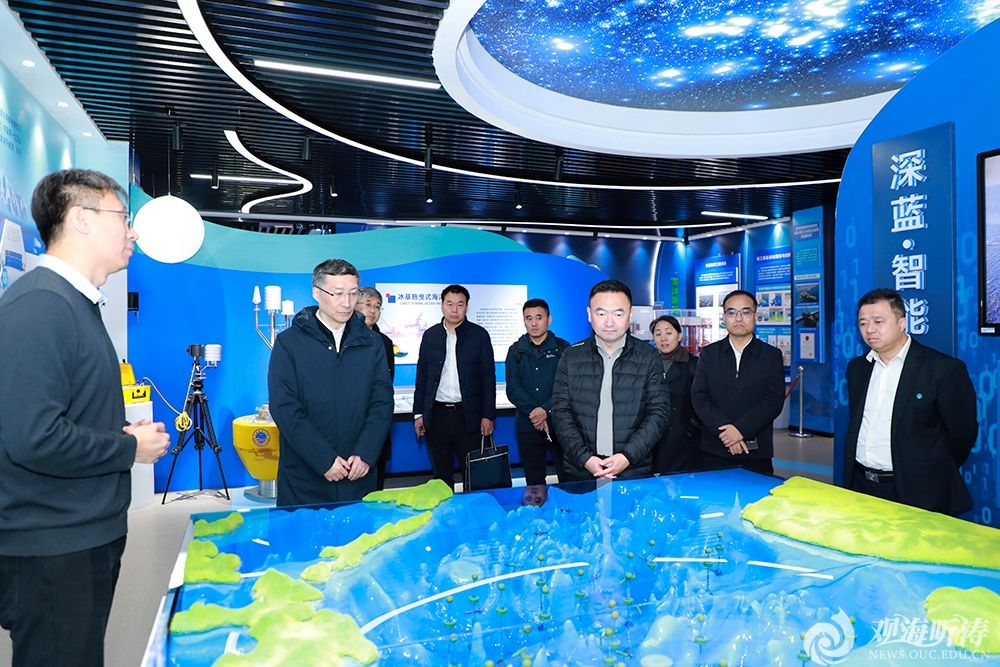 座谈会前,苗剑一行参观了中国海洋大学海洋科技成果展。