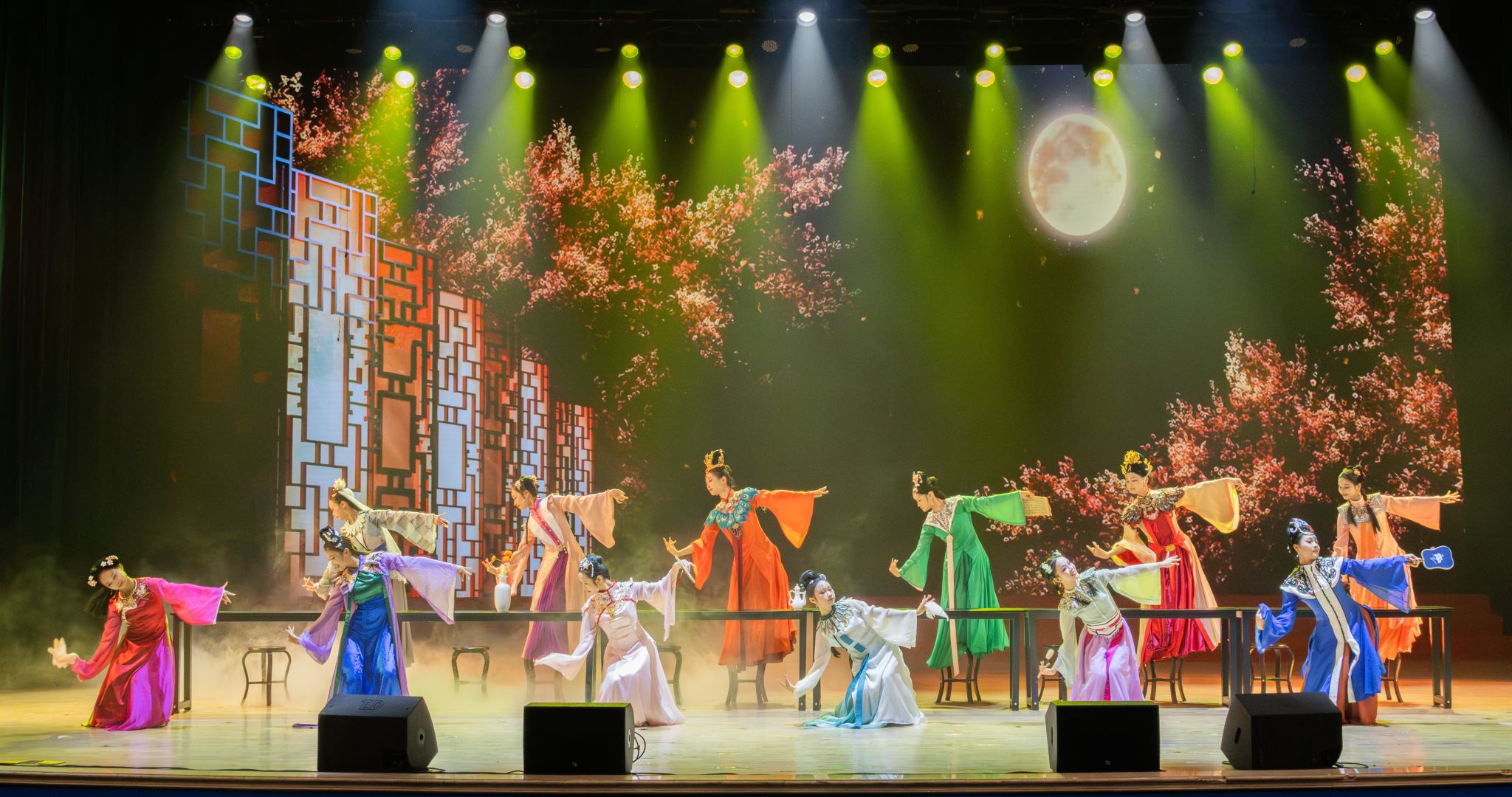 教师小组唱《外婆的澎湖湾》温情引入“千帆聚星河·共绘山海卷”篇章,熟悉的旋律唤起师生美好回忆。学生小组唱《挑着好日子山过山》节奏欢快,唱出师生奋发向上的精神风貌。舞蹈《游园》展现古典雅韵。歌曲《是妈妈是女儿》以温情对话触动人心,展现亲情的绵长力量。民族服饰走秀《山海灵》绚丽登场,生动呈现八桂大地多彩文化与和谐共生的美好画卷。