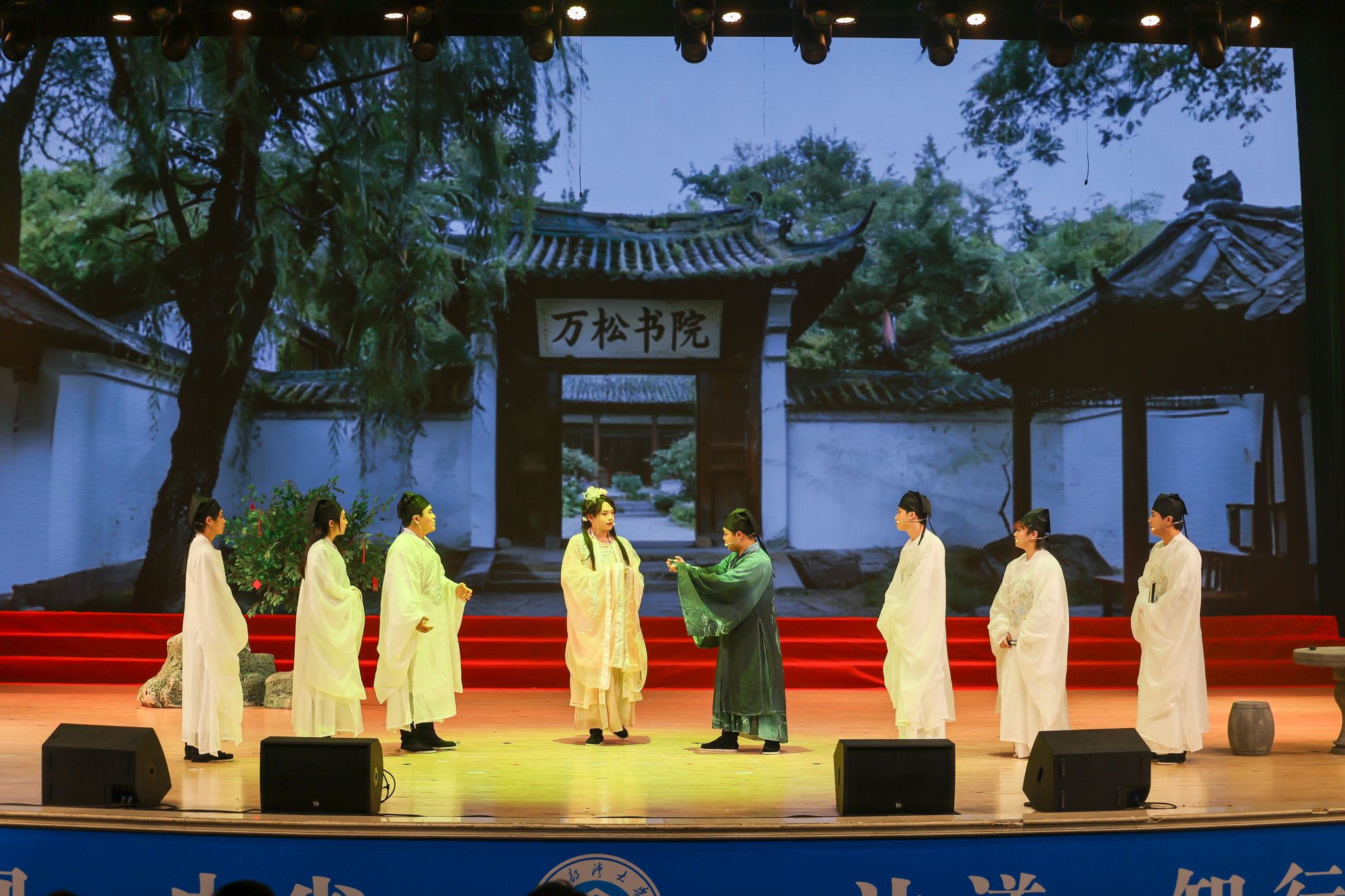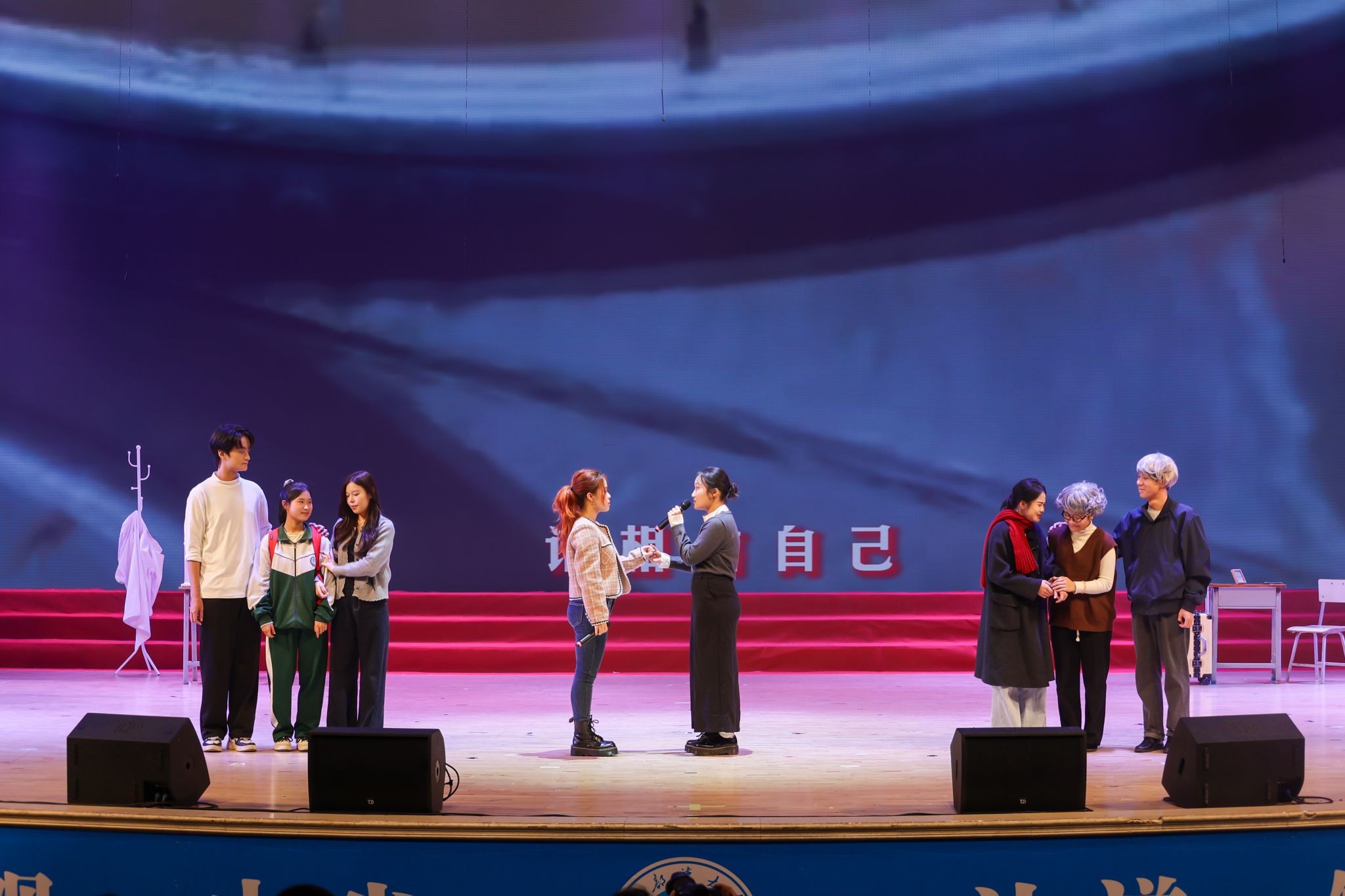 盛典紧扣时代主题与学校办学特色,在气势恢宏的民乐合奏《云宫迅音》中正式拉开帷幕。深情的朗诵《向海之路——我们的大运河》展现了学校服务向海经济发展和平陆运河建设的使命担当,开启“潮涌运河畔·青春启新航”篇章,舞蹈《江南》以柔美舞姿勾勒水乡韵味,将江南的诗意与生机展现得淋漓尽致。原创音乐剧《守鲎》选段《守候》致敬学校海洋科研工作者对中国鲎保护的执着坚守,诠释守护自然的深沉力量。教师舞蹈《一条大河》则以动人舞步,演绎育人初心如长河奔流、润泽心灵。