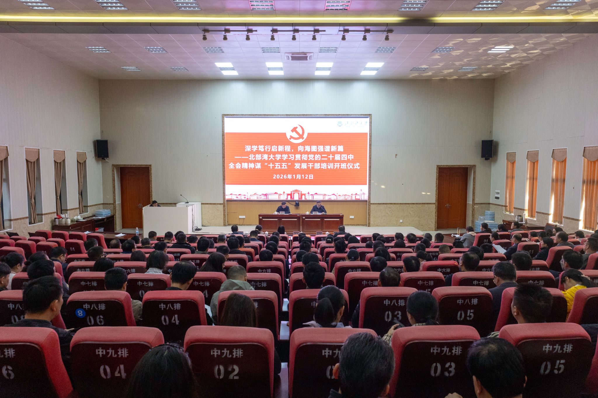 1月12日,我校学习贯彻党的二十届四中全会精神谋“十五五”发展干部培训班在12号教学楼204报告厅开班。全体校领导、中层干部以及党务干部参加培训。校党委书记、校长苗剑作动员讲话,校党委常委、副校长马秀明主持开班仪式。
