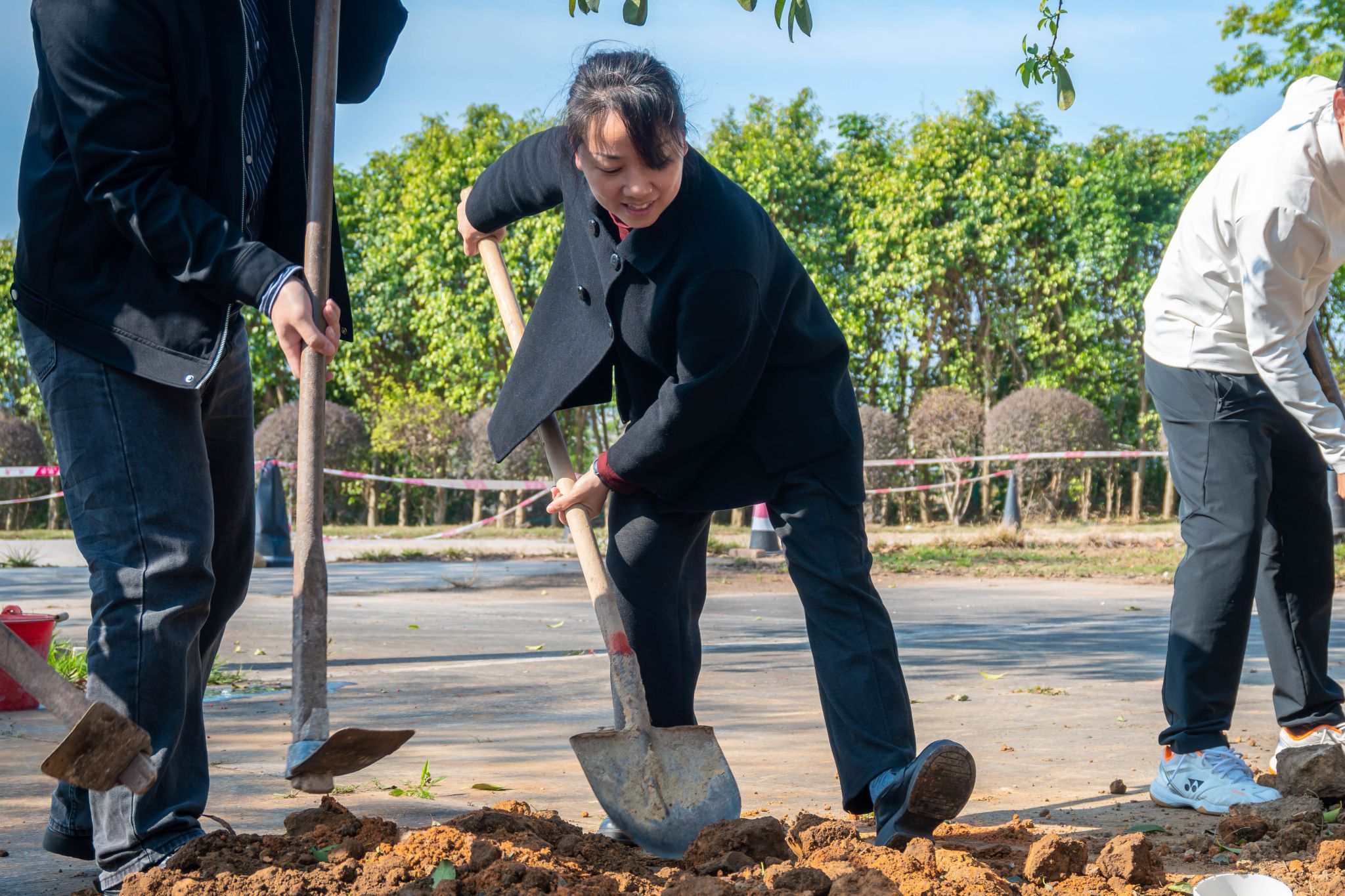 活动现场,师生们在专业人员的指导下分工协作、配合默契。挥锹铲土、扶苗填坑、围堰浇水,每一道工序都细致认真,现场井然有序,洋溢着热火朝天的劳动氛围。经过辛勤劳作,师生们携手栽下龙胆树、白玉兰20余棵。“以前只是知道植树节,今天自己拿起铁锹,培土浇水,才真正感受到种下一棵树的分量。”现场一位同学感慨地说。