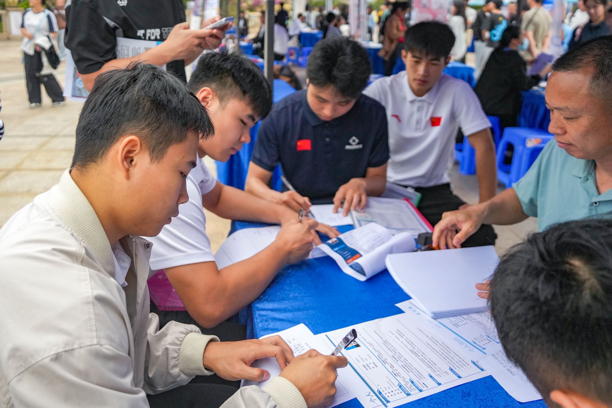 学生们填写应聘报名表