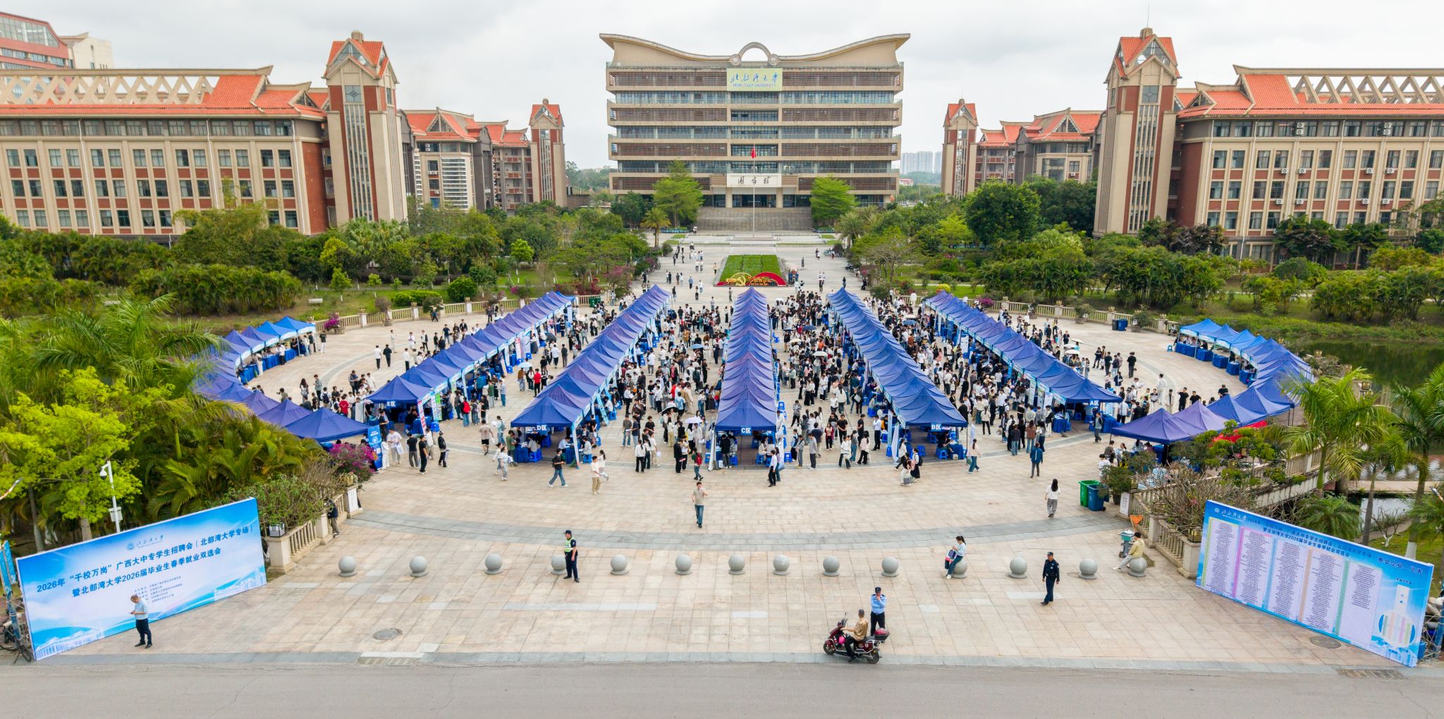 3月18日,2026年“千校万岗”广西大中专学生招聘会(北部湾大学专场)暨北部湾大学2026届毕业生春季就业双选会在学校中心广场成功举行。本次双选会由共青团广西壮族自治区委员会主办、北部湾大学承办、北海市人力资源和社会保障局协办,吸引了188家用人单位参会,提供涵盖智能制造、航海技术、海洋生物、石化新能源等领域的各类岗位,超过6000名毕业生进场求职。