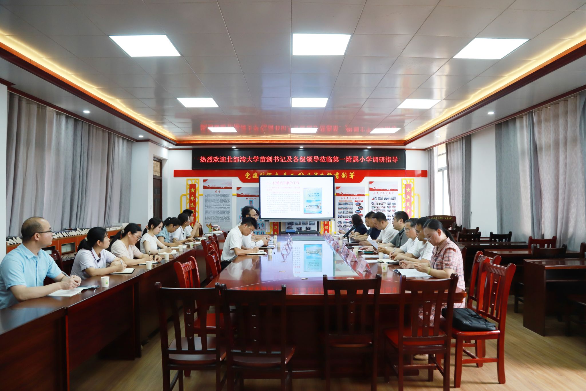 4月8日,校党委书记、校长苗剑率队赴北部湾大学附属小学(以下简称“附属小学”),实地调研小学建设和有关工作开展情况,并进行座谈。附属小学校长梁庆以及有关部门负责人,学校党政办、工会及教育学院相关负责人陪同调研。