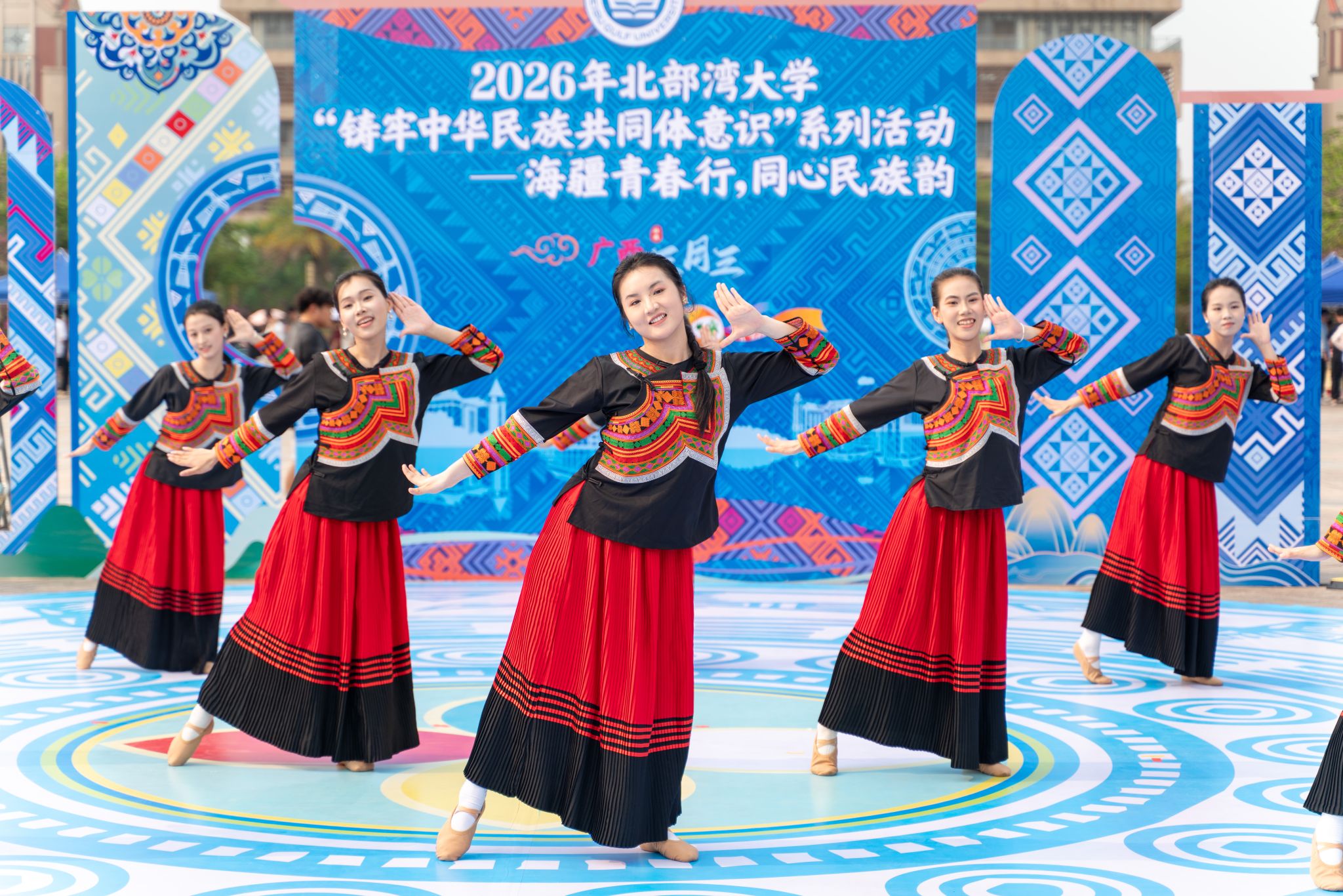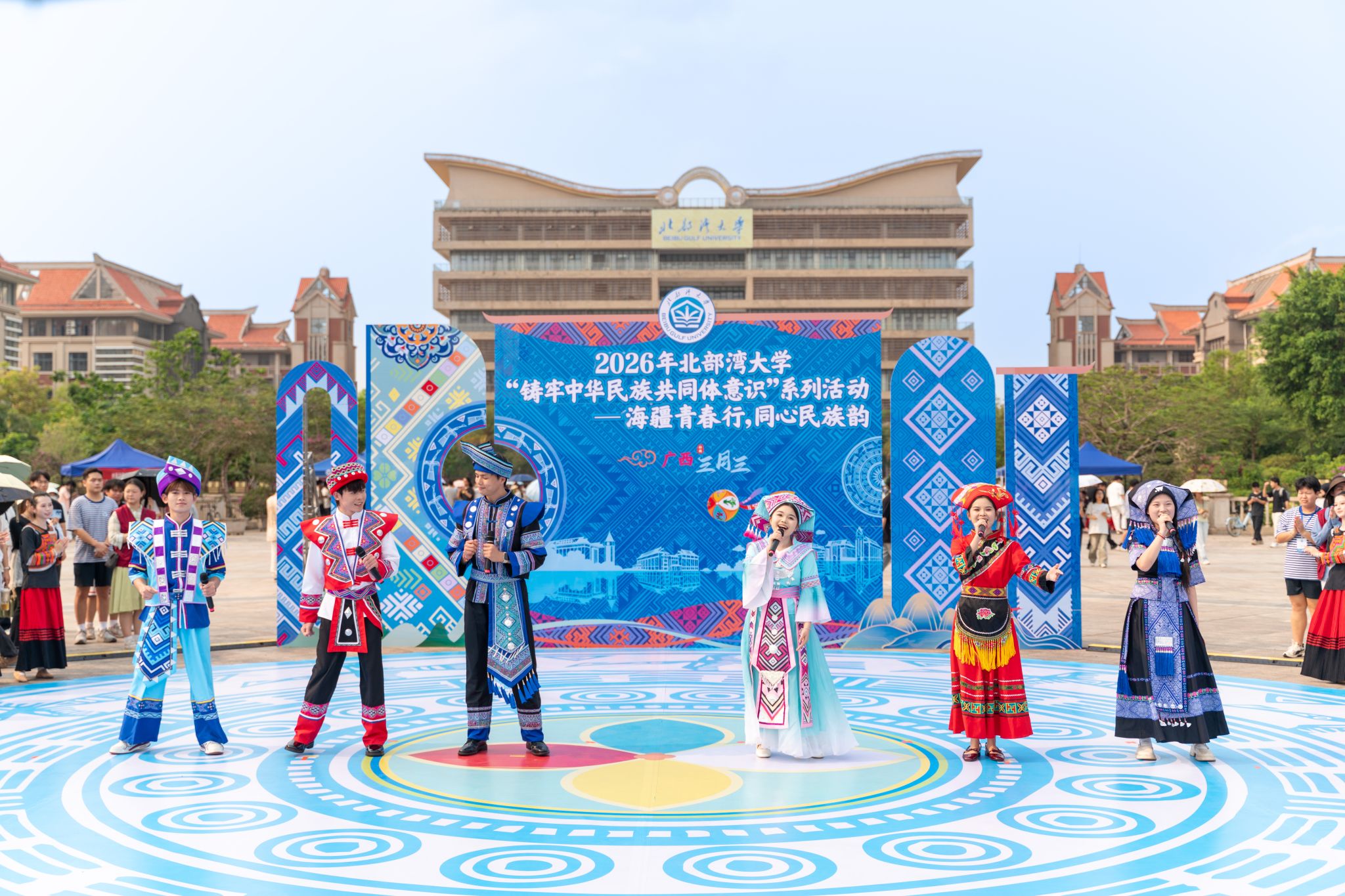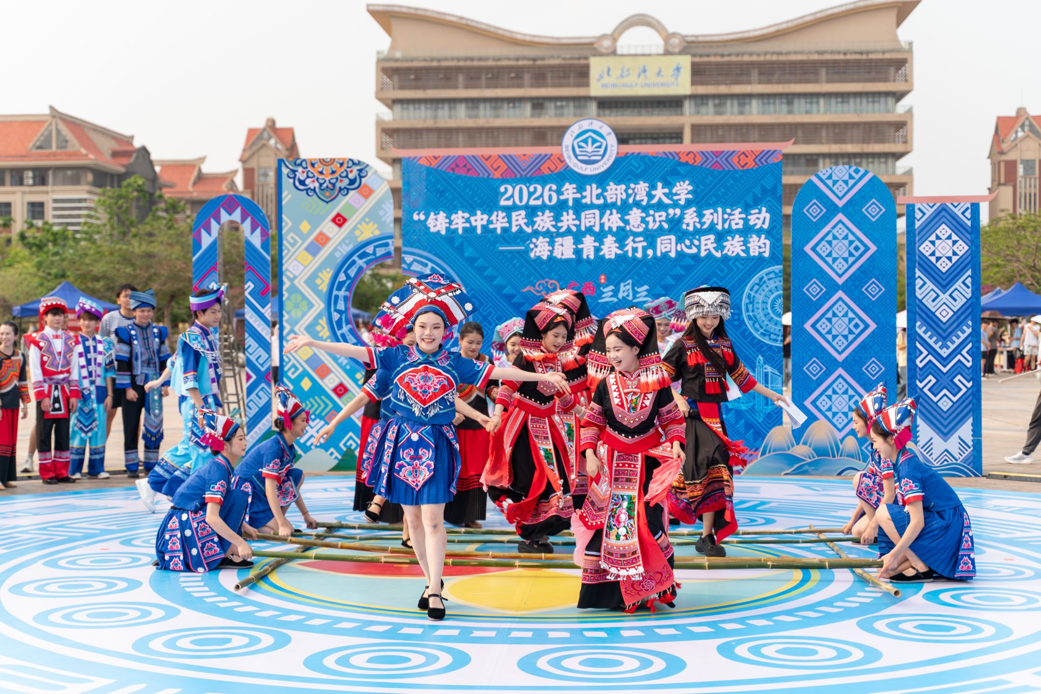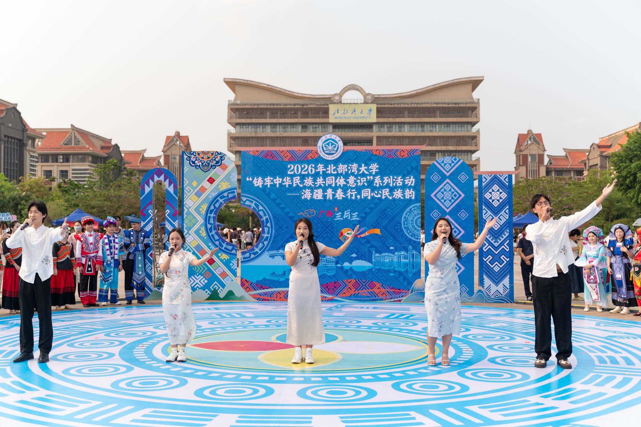 “唱山歌哎,这边唱来那边和……”4月14日下午,《山歌好比春江水》在北部湾大学校园内唱响。学校举办“海疆青春行,同心民族韵”主题活动,迎接2026年广西三月三的到来。校党委常委、副校长陈丹、闫松银到场,与师生一同赏歌舞、品民俗,感受民族文化魅力。
