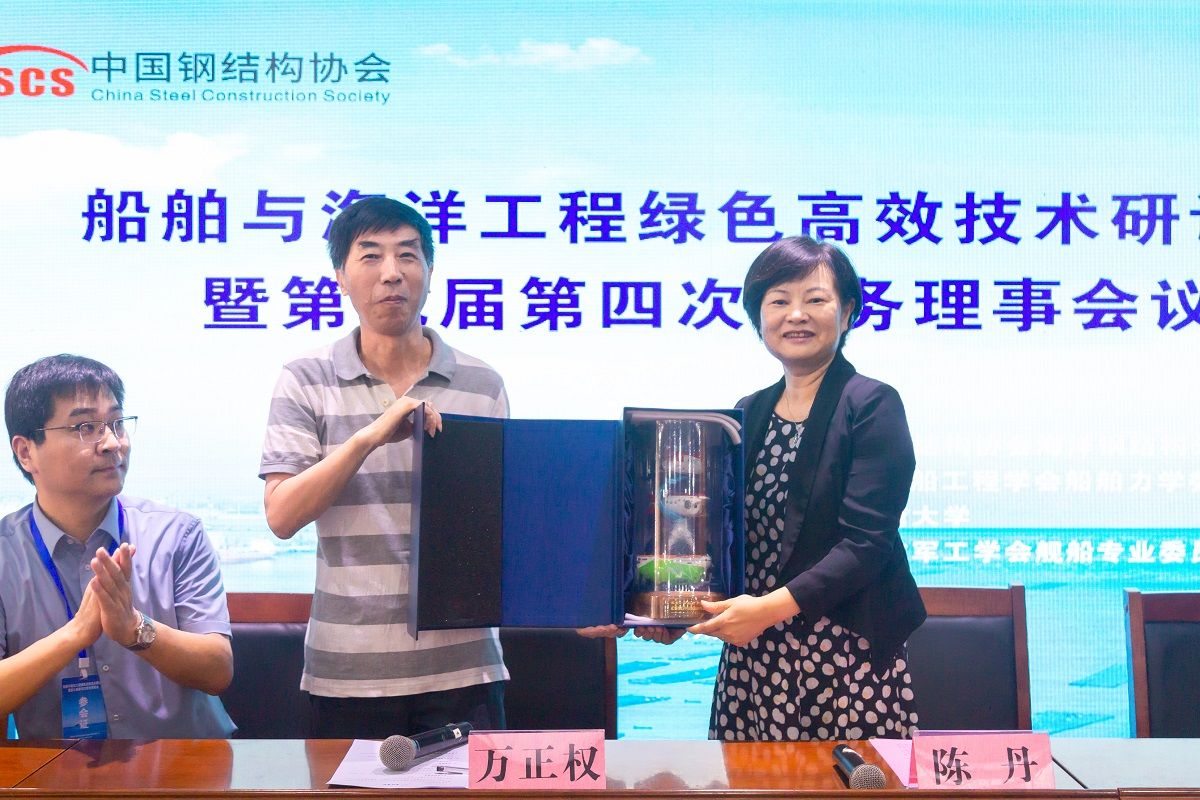 在主旨交流环节,我校蒙占彬教授做题为“北部湾涠洲近海边际油田移动式井口平台研发与工程示范应用”的主旨报告,并向国内钢结构专家汇报了我校船舶与海洋工程学科发展情况。华中科技大学刘敬喜教授、中国石油大学畅元江教授、中国船舶科学研究中心姚骥博士、上海交通大学袁昱超副教授分别以“满足ABS智能规范的海洋平台结构状态监测系统研发及思考”“深水钻井隔水管与井口技术研究进展”“船海装备结构数字孪生关键技术研究”“复合材料技术推动船舶结构绿色高效发展”为题作主旨报告。