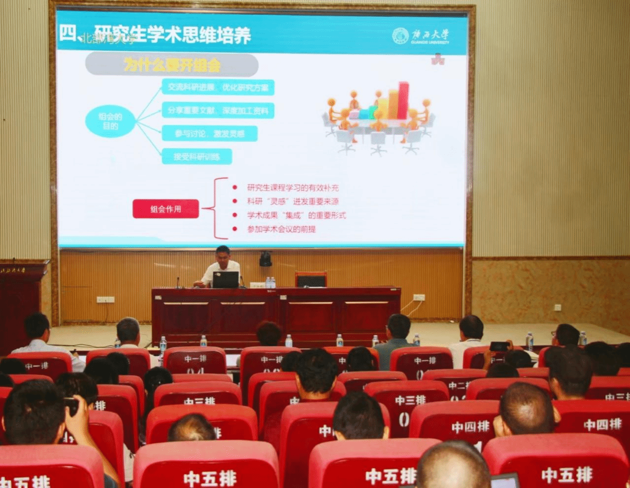 9月15日下午,广西大学机械工程学院副院长贺德强教授和我校发展规划处、研究生处处长刘琼在12号教学楼204报告厅为学校硕士生导师做了《新时期如何培养研究生的科研能力》《严把关、强管理、重培养 履行导师第一责任人职责》的主题报告,学校研究生处副处长潘宇晨主持了本次培训。