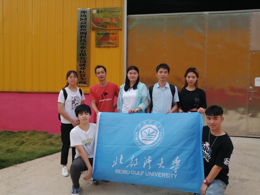 我校师生在那坡同益新丝绸科技实业有限公司就业扶贫车间前合影