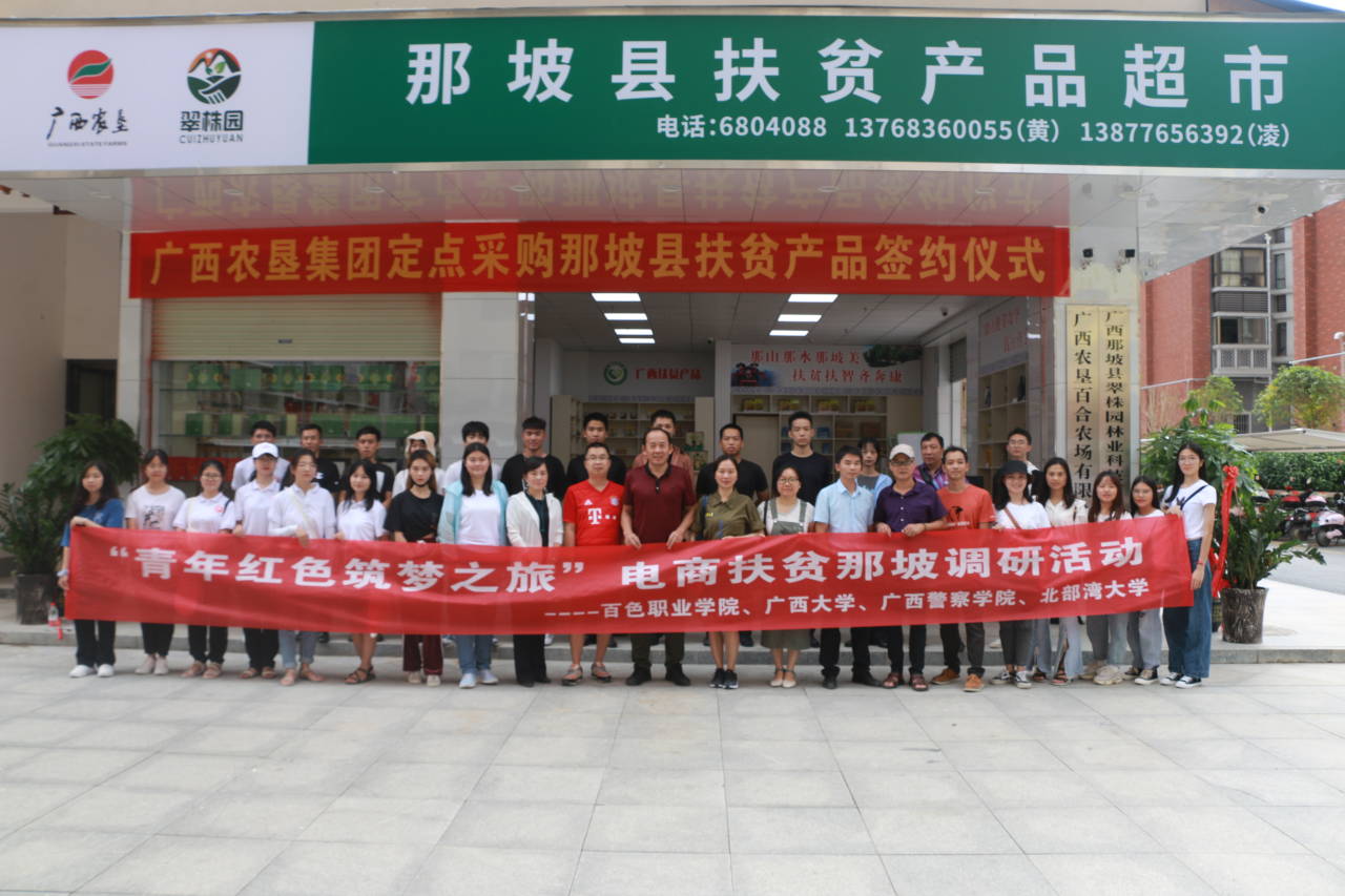 9月14日至17日,由我校创新创业学院组织,李颜辰老师带队,刘科明老师、张杰权老师等一行7名师生与广西大学、广西警察学院、百色职业学院四所高校相关师生,组成调研团队,共赴百色市那坡县开展电商扶贫实地调研活动。