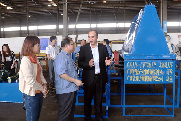唐高华副校长参观了力顺公司工厂厂房,对由我校与广西大学、广西民族大学和广西蔗糖产业协同创新中心共同研发,广西钦州力顺机械有限公司制造的智能化甘蔗预切种种植机进行了深入了解。他指出,产教融合能够带动高校不断提高科研水平和地方经济发展,通过校企合作,能够实现产品理论创新的有效落地。